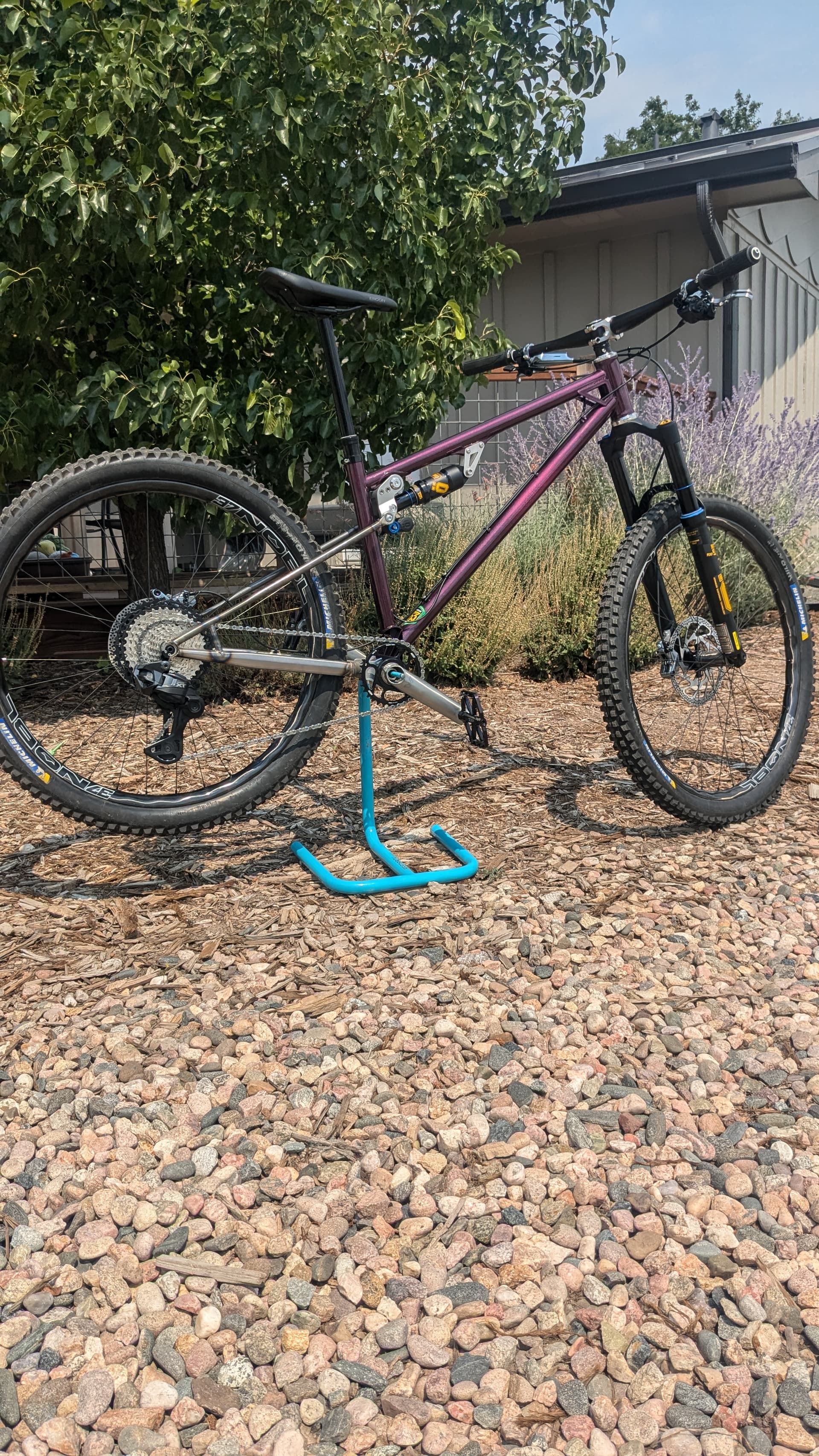 So it’s a BB pivot, flexstay, mullet, single speed . Kinda built to be a trail/DJ. 118mm rear 140mm front.