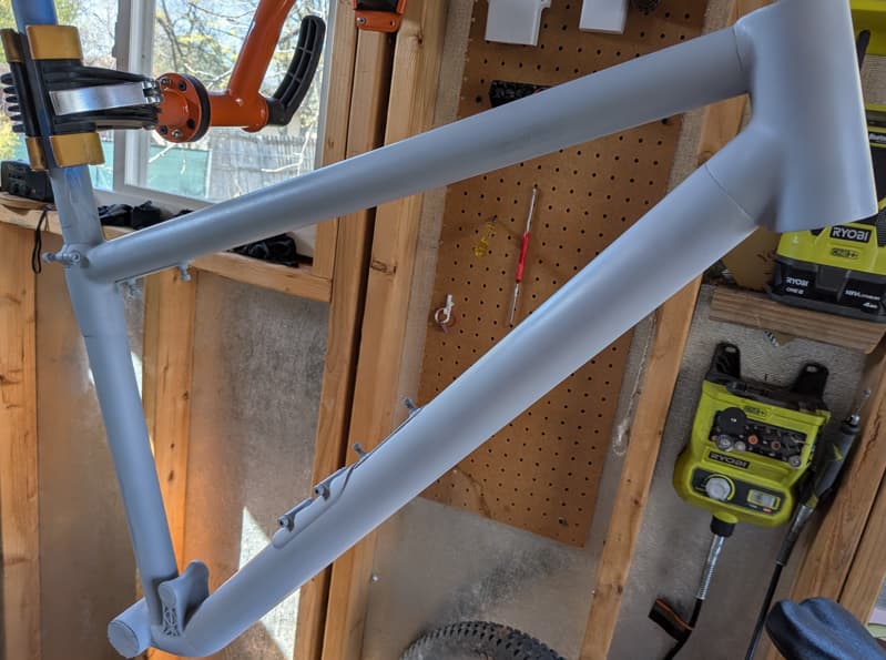 Now I just have to make a rear triangle. I’ll hopefully print the Ti lugs for the rear end in the next few weeks, and have thing thing all bolted together in a couple of months.