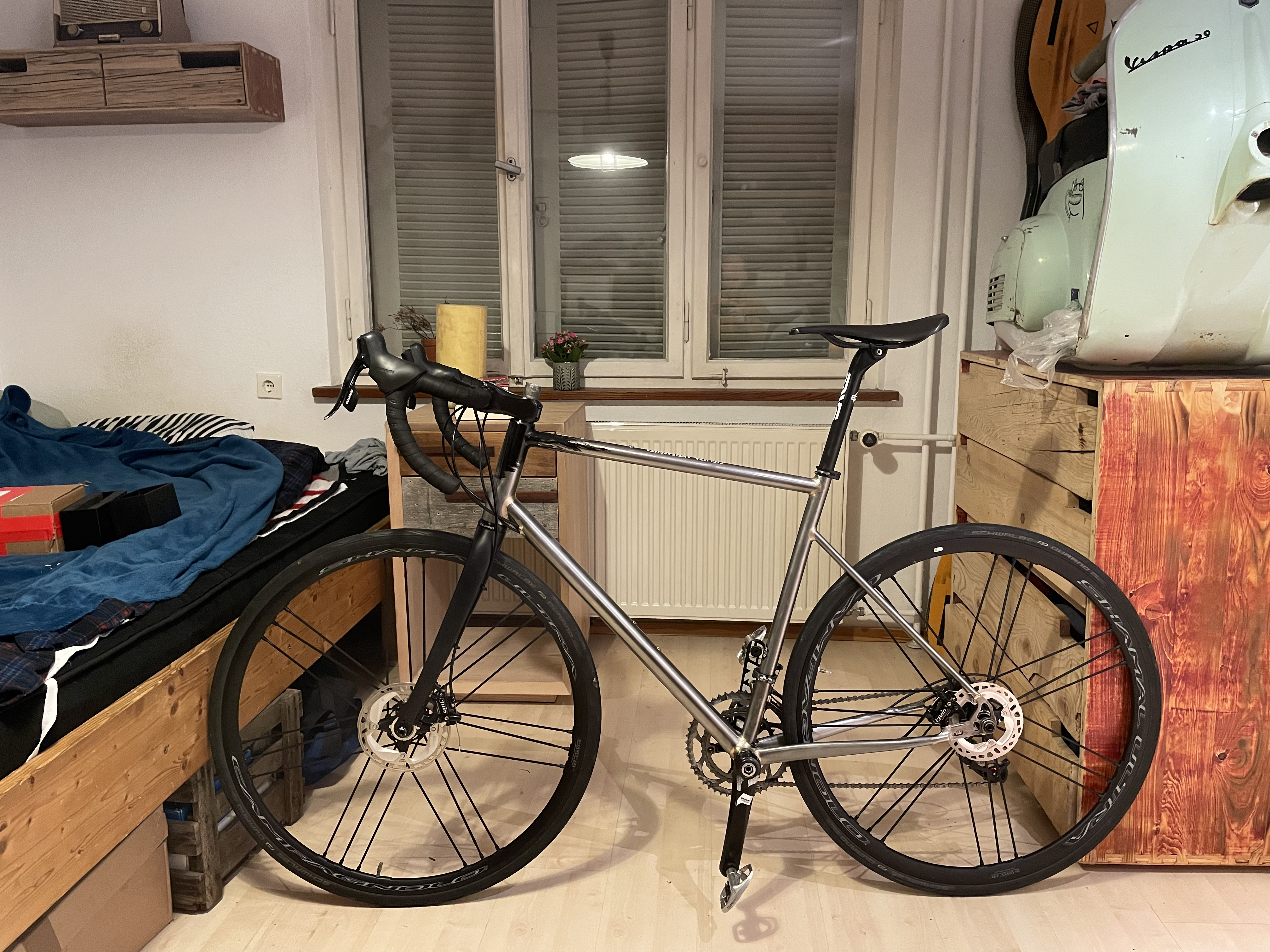 ~1960g: A robust, tig-welded frameset designed for endurance and gravel, using Spirit tubing.