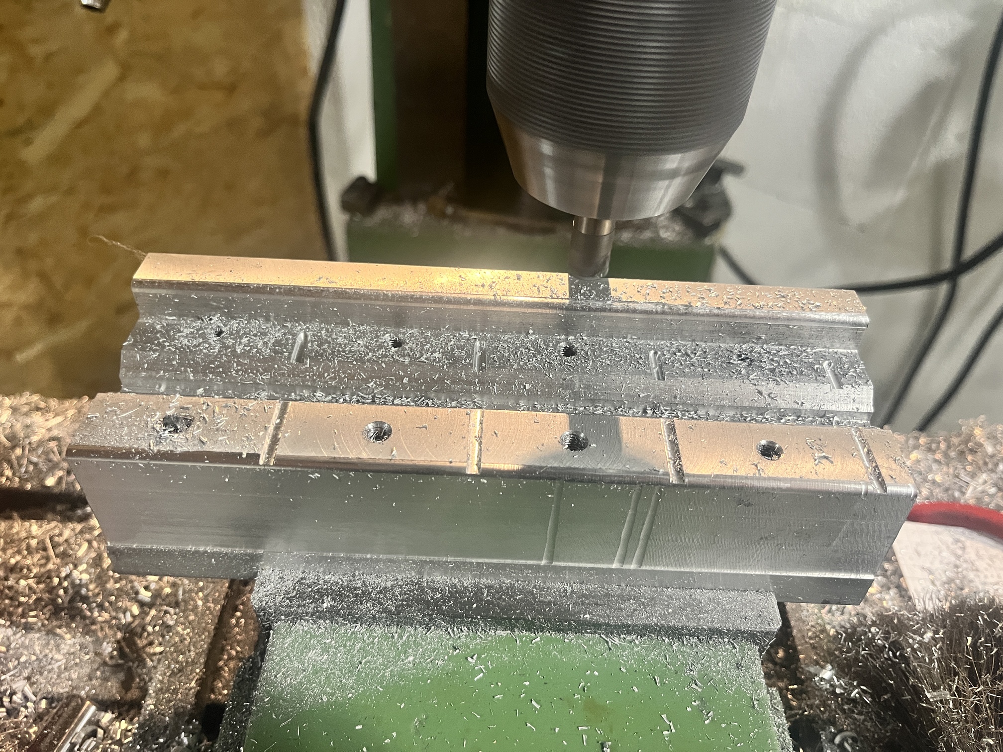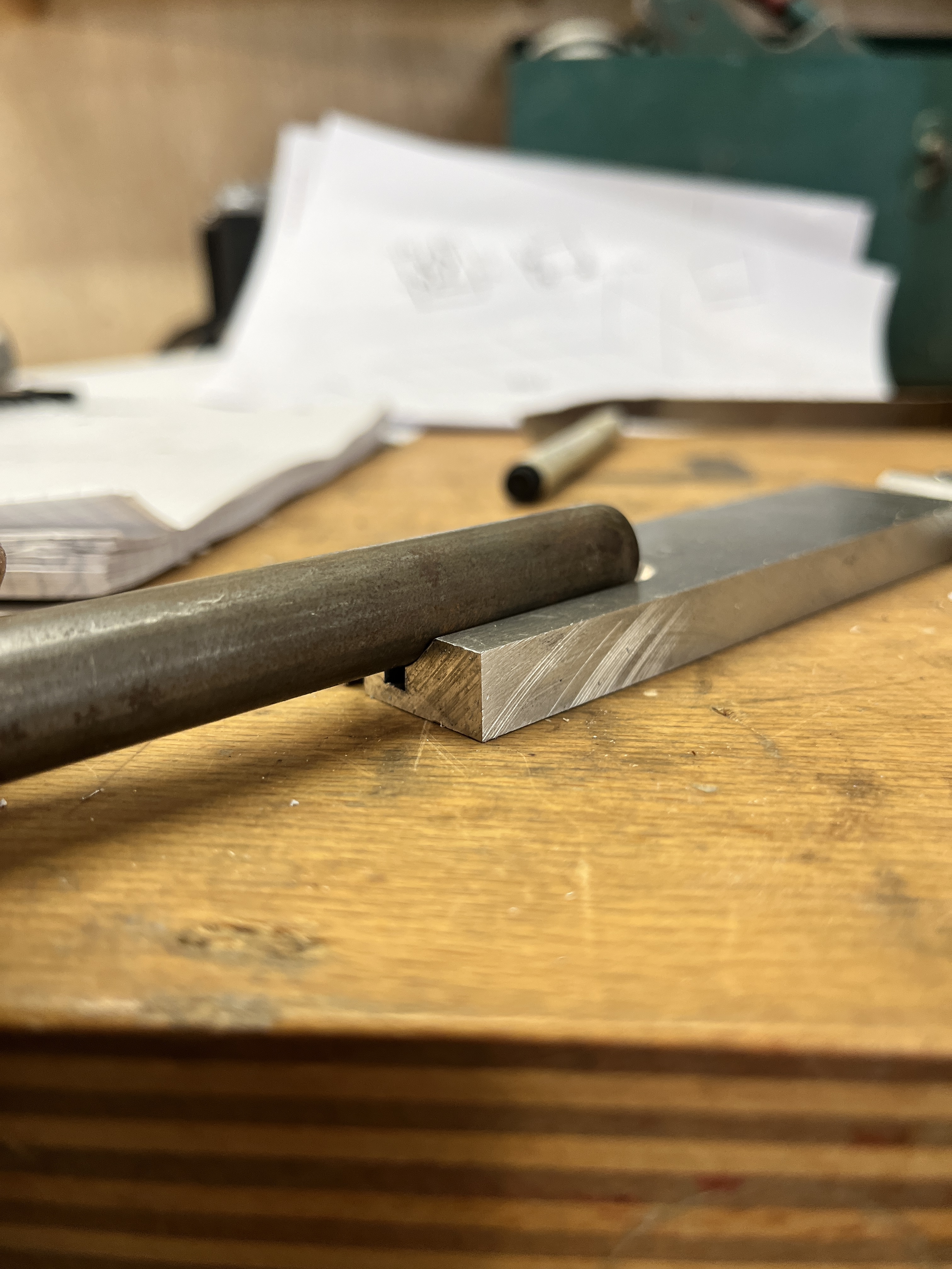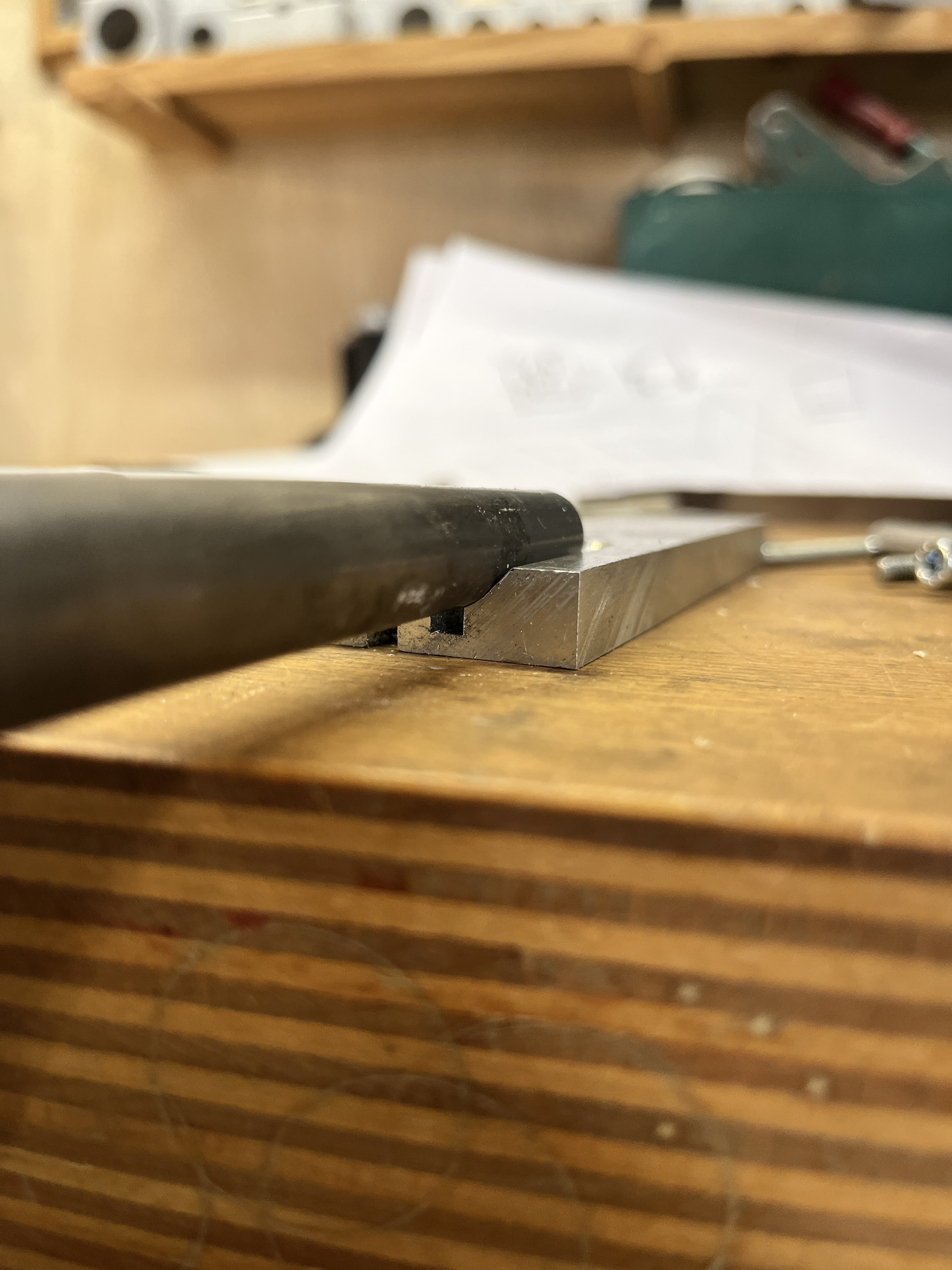 Big problem are the v-blocks. I don’t know wich size I should use for the nut. I want a horizontal clamp because the miter center can be at every v-block the same. So these thinks I built already.