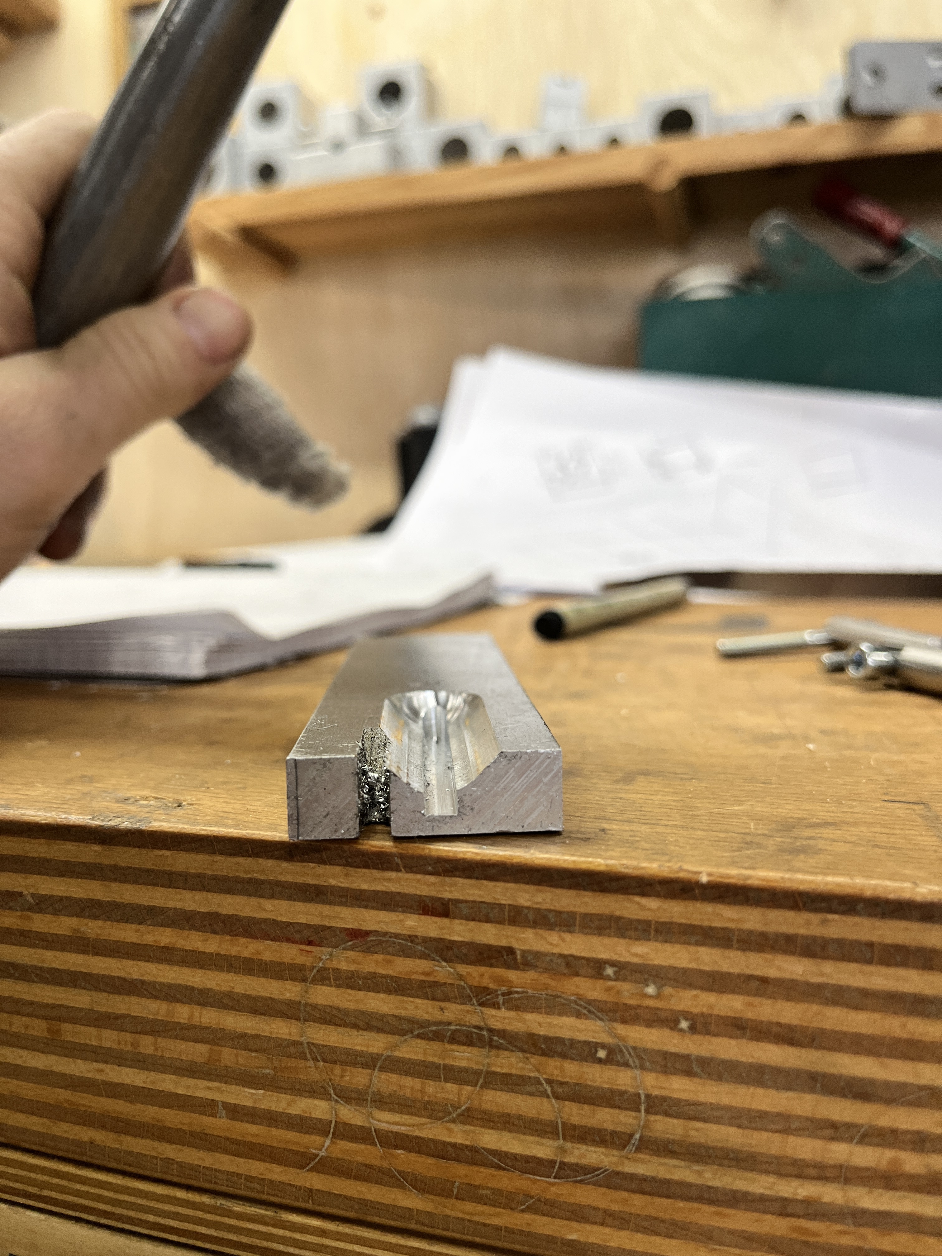 I also miter a nut to test the fit. This one works great with the thinner ends of chain and seatstays. Wich should choose for the big end of the chainstays to bb? Is a vertikal v-Block the better choice?