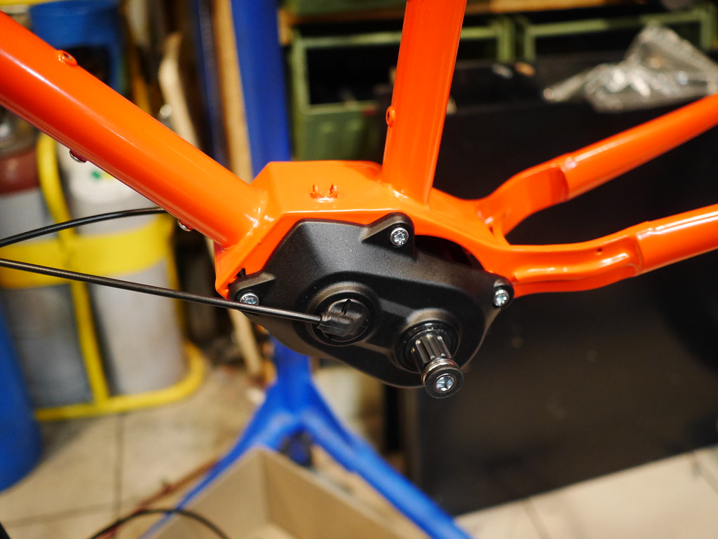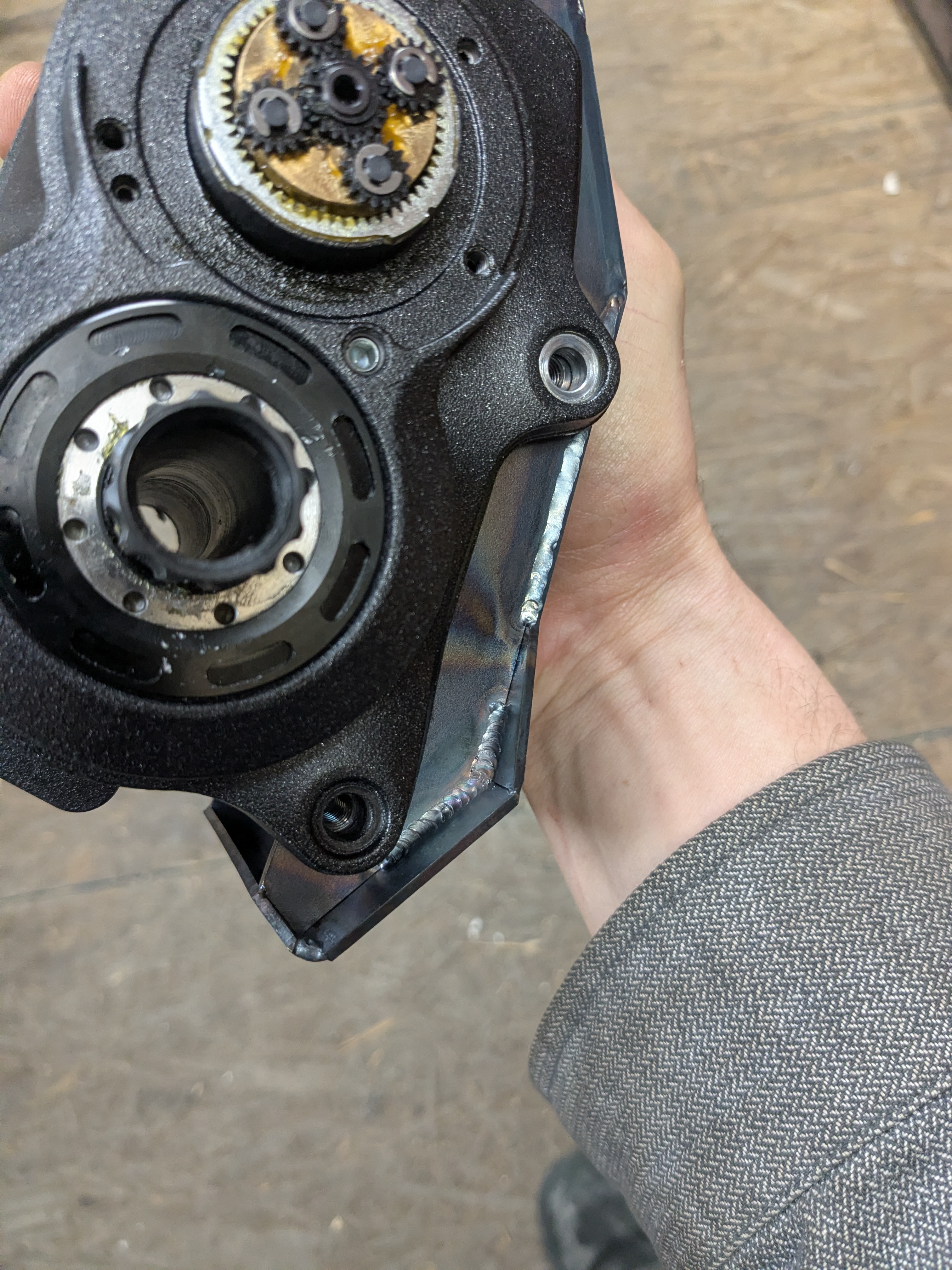 Here’s my second iteration. I feel pretty good about it. Main piece is slotted and bent and welded to the plates that have the bolt patter, plus little gussets welded on the “wings”. Goal was to have a wider place to attach chainstays to avoid using a yoke – trying to keep wheelbase relatively short and accommodate 2.6” tires.