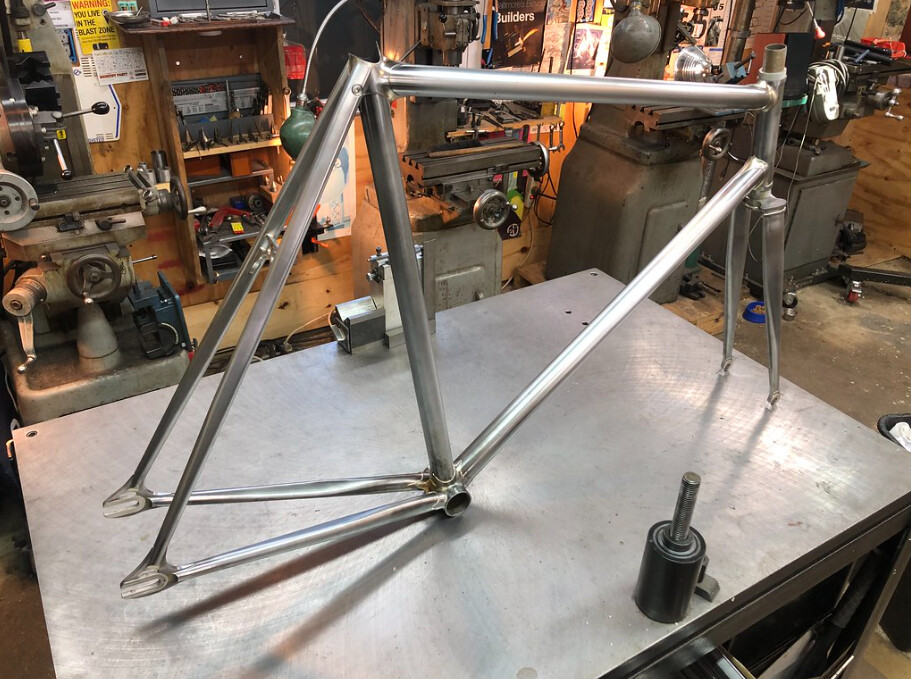 You might also want to think about indoor/outdoor. When it’s time to weld out the frame you absolutely need to be shut inside with it or a stray breeze can blow away the argon and ruin your day. But for everything else a bit of fresh air and natural light is preferable, and even working outdoors if you’re grinding (or painting, unless you have space to set up a proper indoor paint area, which is much better, but I don’t). And at some times of the year you might need heating.