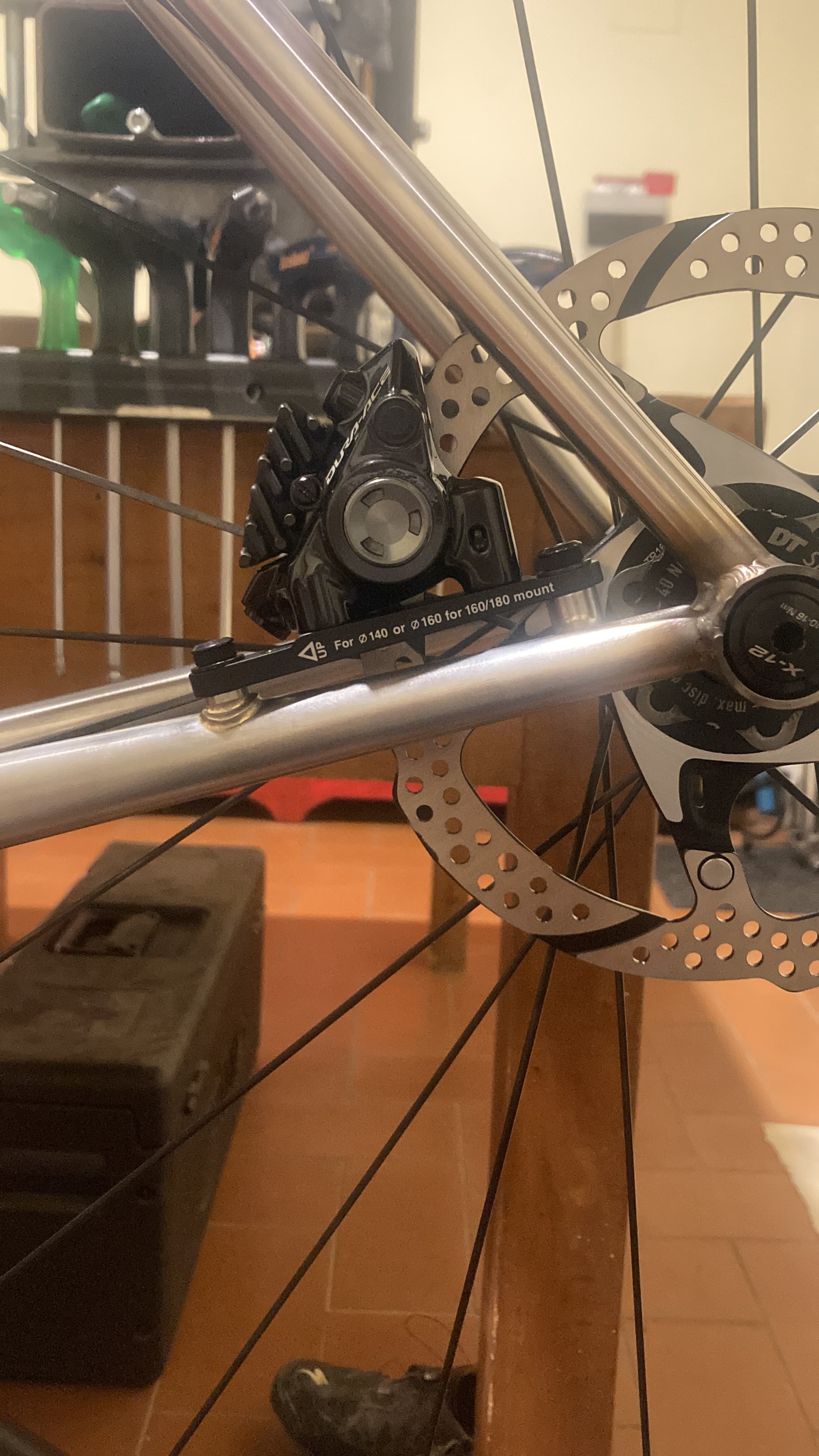 So I just thought of using the front flatmount adapters for the forks and just adding two tabs with M5 thread to the chainstay.