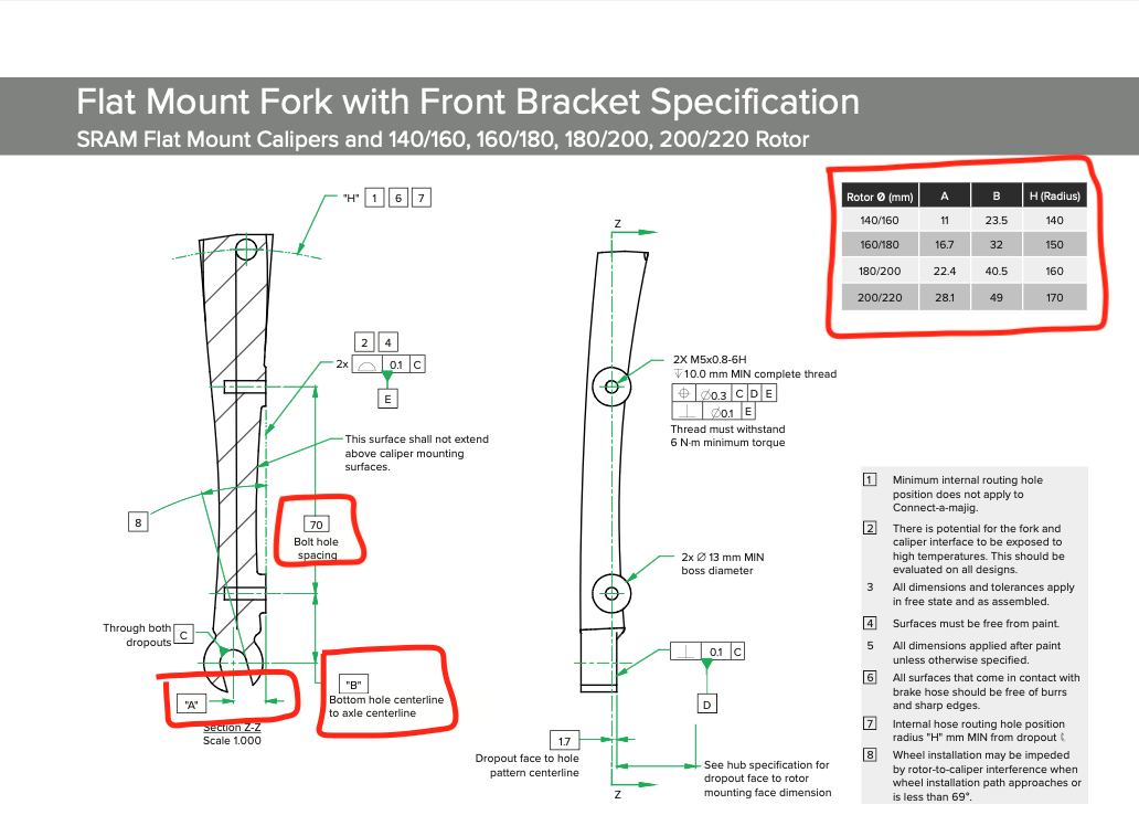 If you’re hoping to use the Columbus Life short taper chainstays, it’s probably worth modeling the assembly in CAD or doing a quick mock-up to verify that the caliper mounts can be positioned at the correct height relative to the axle – I think the forward boss will be close to the 30mm portion of the tube, and based on SRAM’s spec, that’s a no-go for a 140/160 rotor configuration and an extremely tight fit for 160/180 rotors. You might be able to offset the axle from the tube centerline to gain some wiggle room for the 160/180 configuration, but it’ll likely be a game of millimeters to get the short taper tube to work.