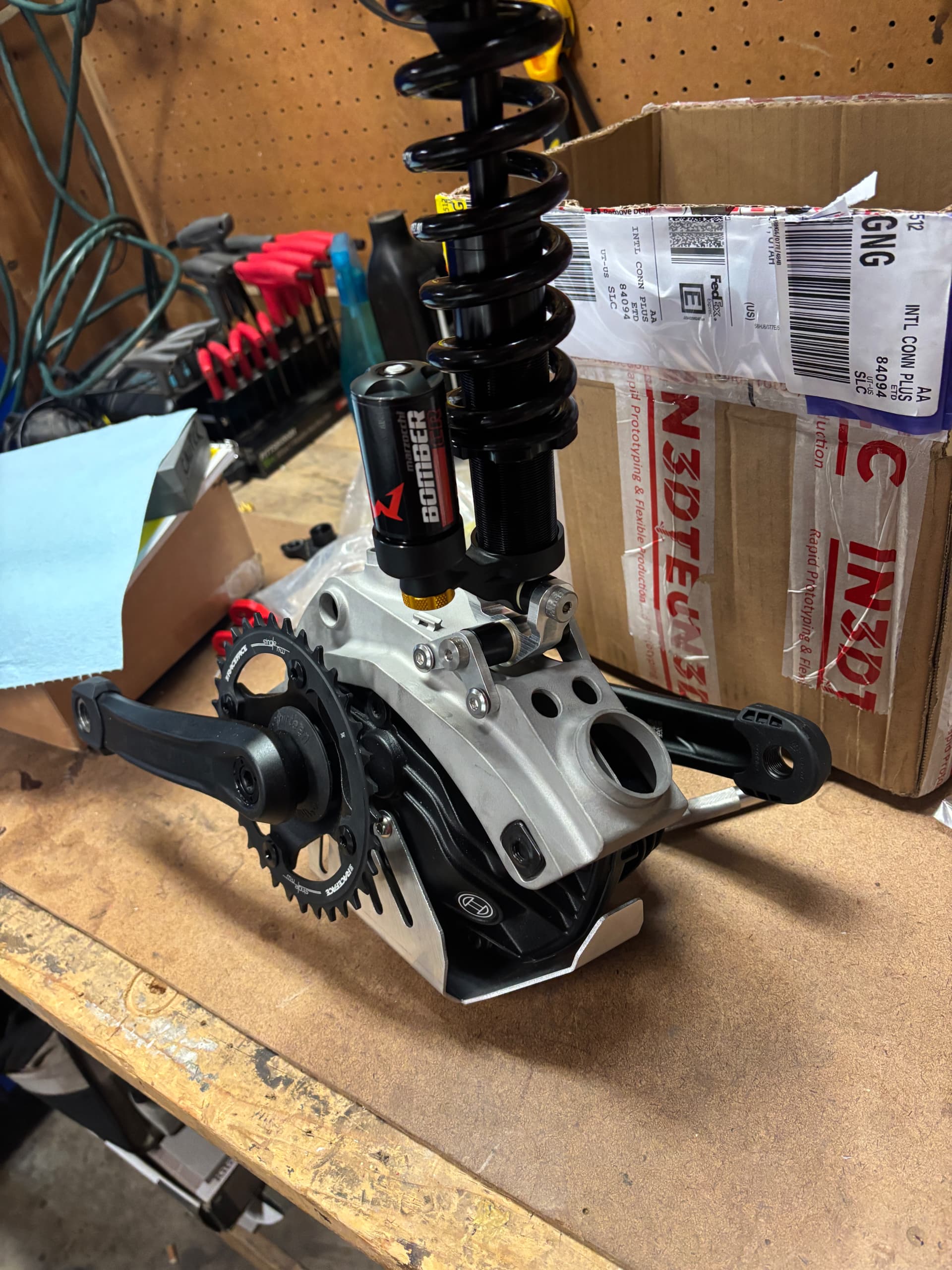 I test fitted the bash guard and it fits nicely. I 3d printed the entire rear triangle and I’m glad I did since there are a few tweaks I need to do for the for the stainless versions. Pumped to get the parts in.