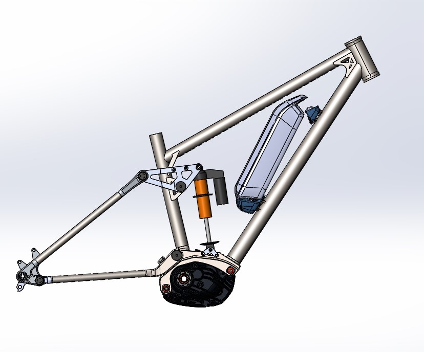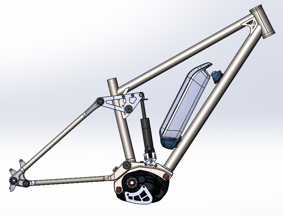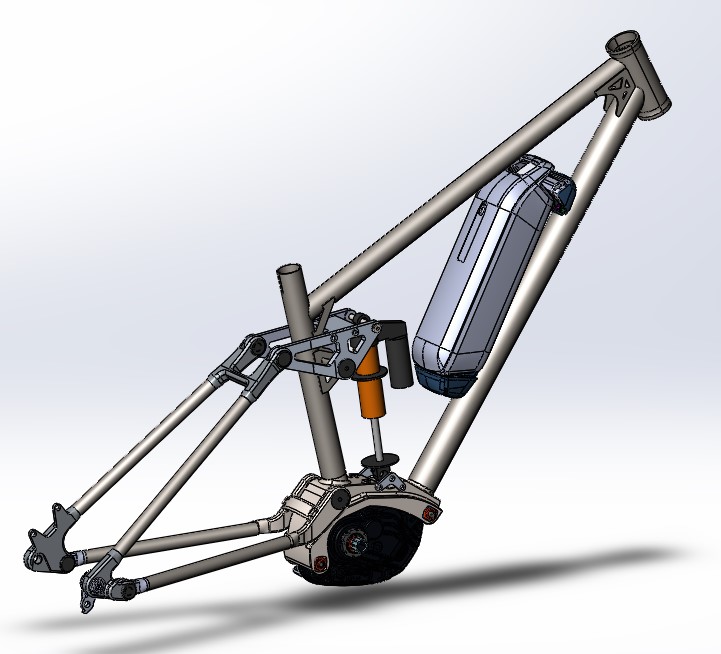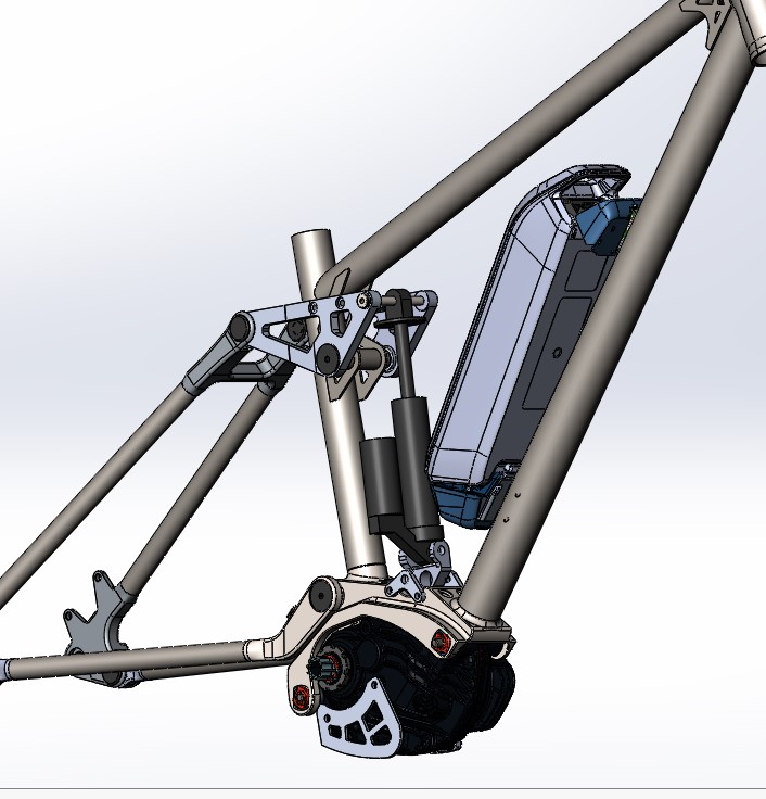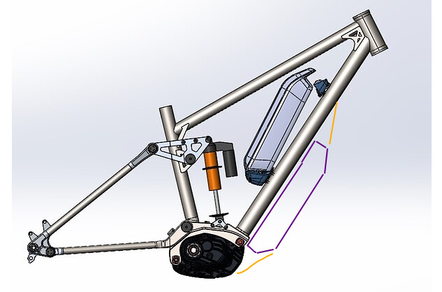 I’m loving all this feedback. Thanks everyone! I will play around with some things in CAD for different shock layouts and check battery specs to see if it can be hung in that configuration. Luckily I live in the desert so I won’t be spraying the battery with water from the from wheel often if mounting the battery under the tube is the best way to go.