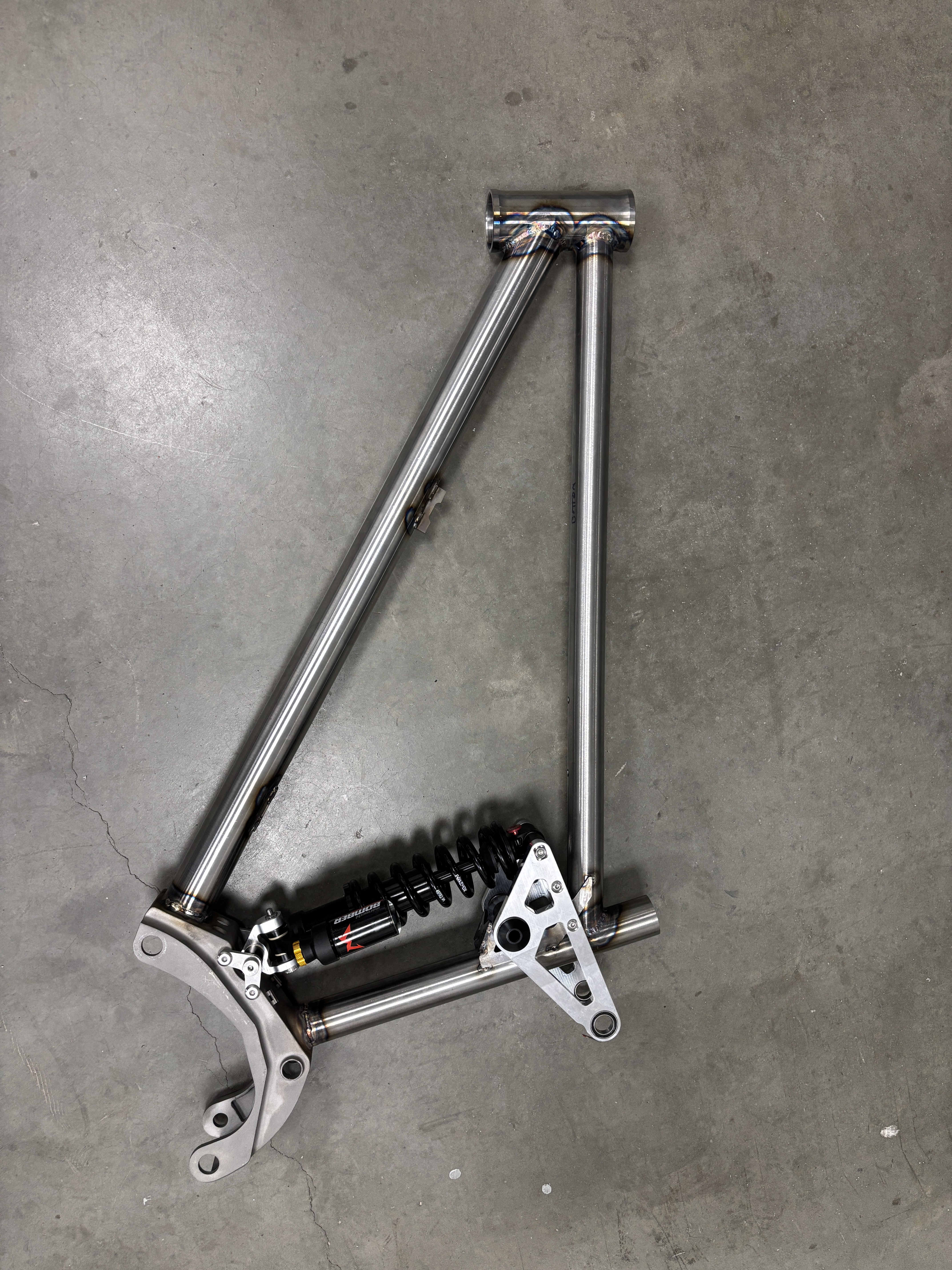 Got the front triangle almost fully welded. Just need to finish the rocker pivot area and the gussets. My welding is getting better but still a lot of room for improvement