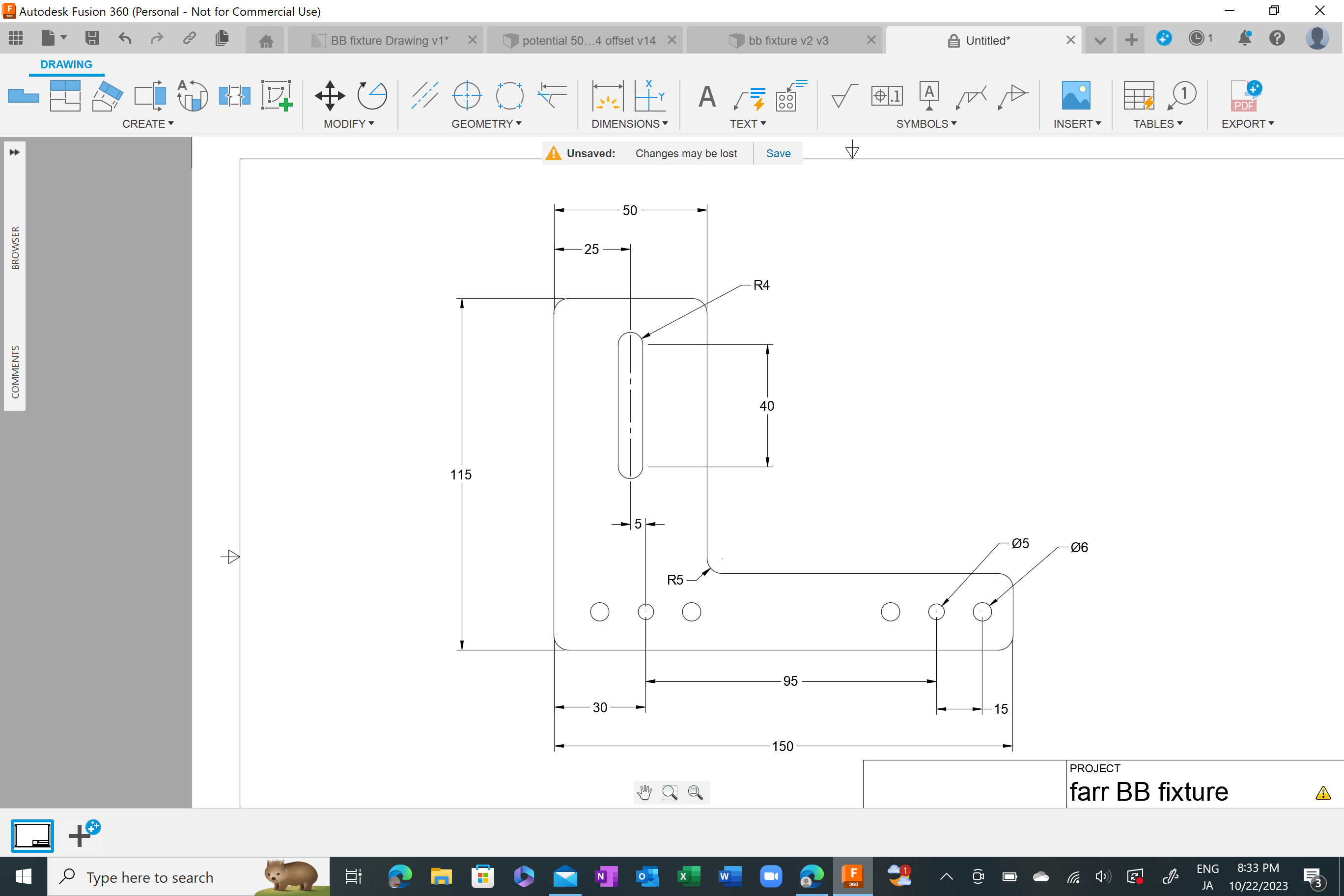 Edit: I realized I forgot to offset the BB tower 5mm forward of the hole mounting location. Now I’m running into issues with how I constrained the hole locations. It’ll take me a few to re work the drawing.