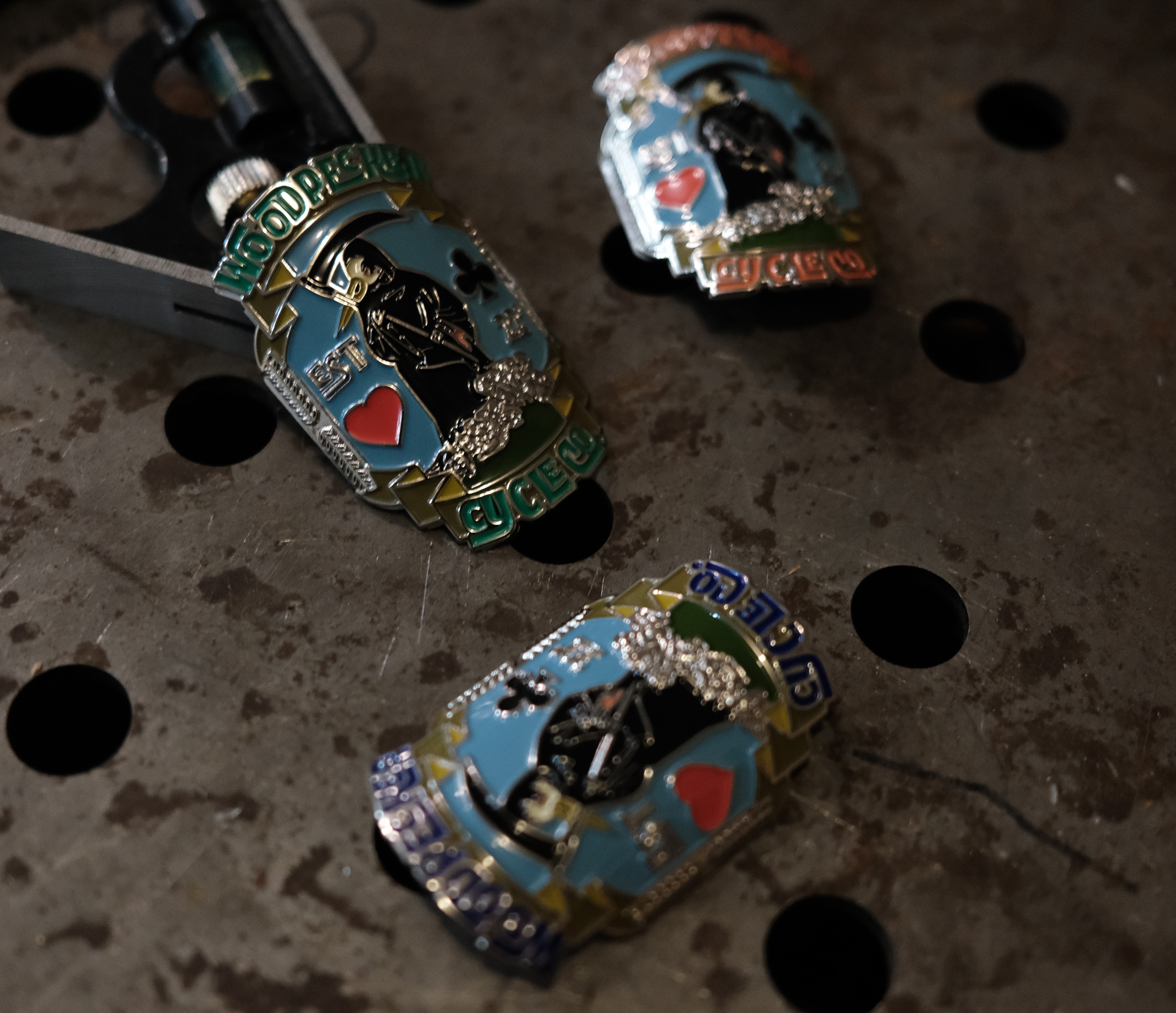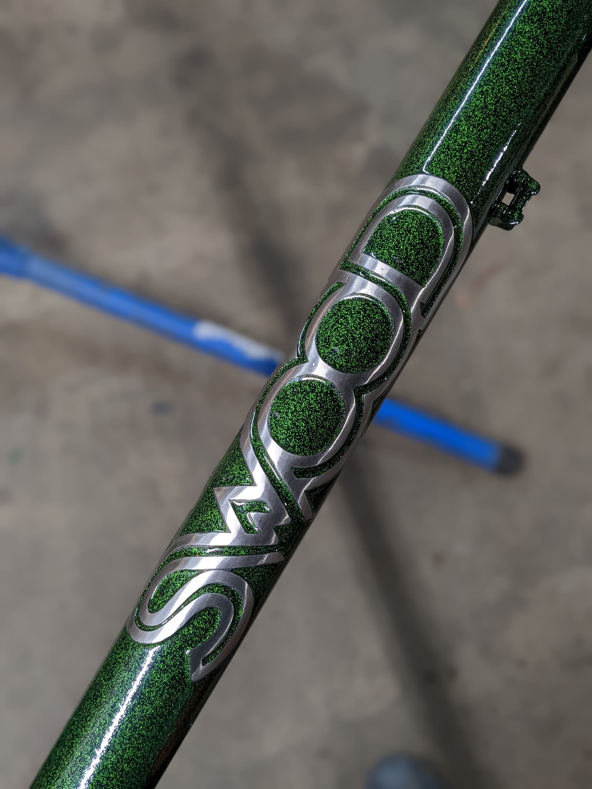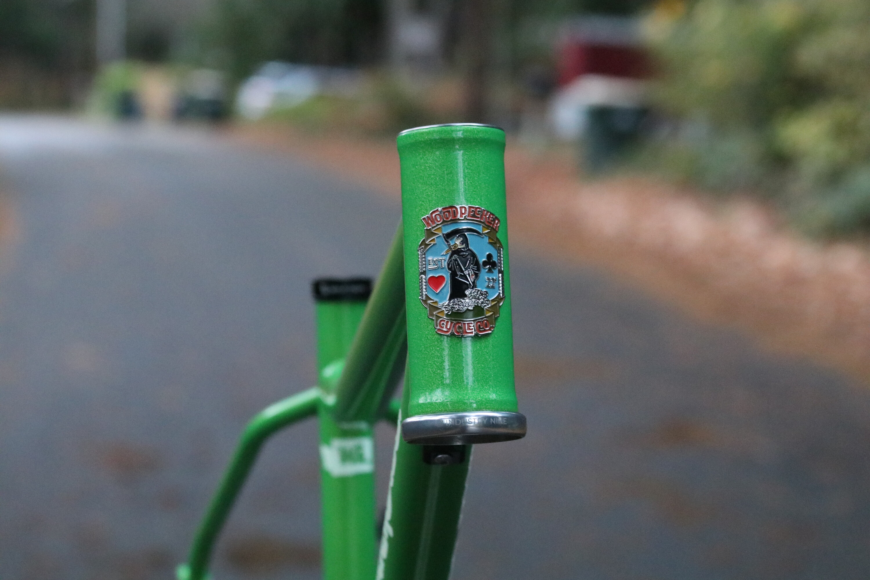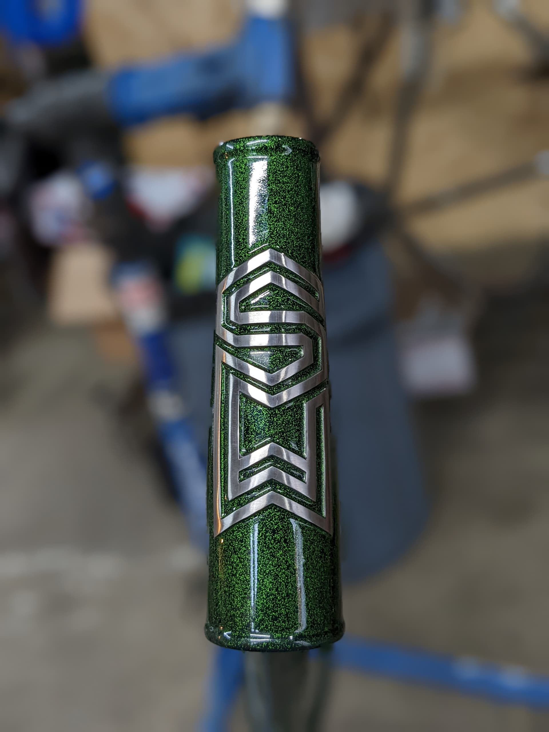 I had a friend help me with the design and contacted Jen Green to cast them in bronze. I always loved bronze headbadges and wanted to emulate some of my favorite builders with my own badge that comes stock on every frame. She does such great work and makes so many builder badges!