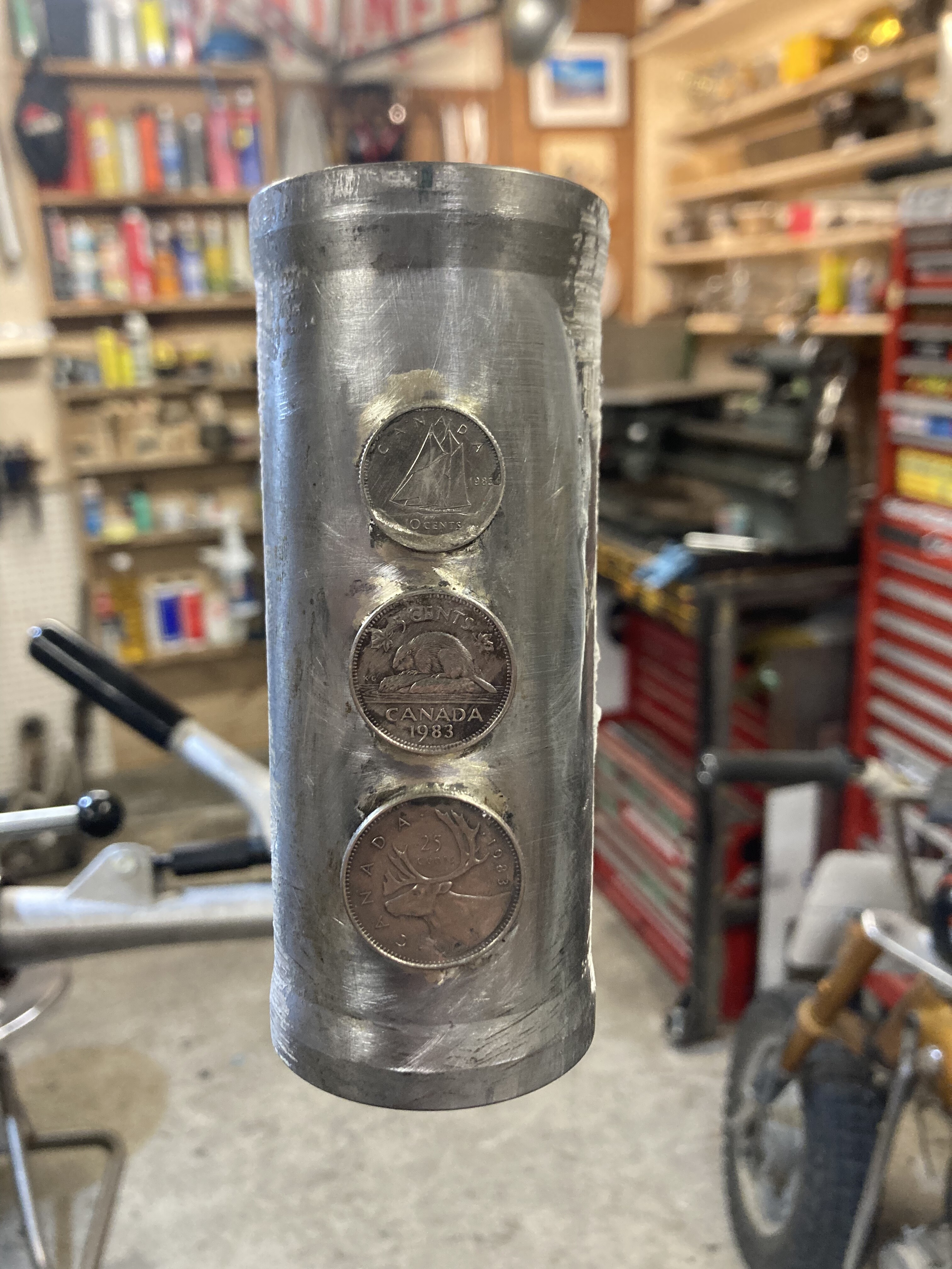I just did this on a bike for my friends 40th birthday. A dime, nickel, and a quarter all from the year he was born.