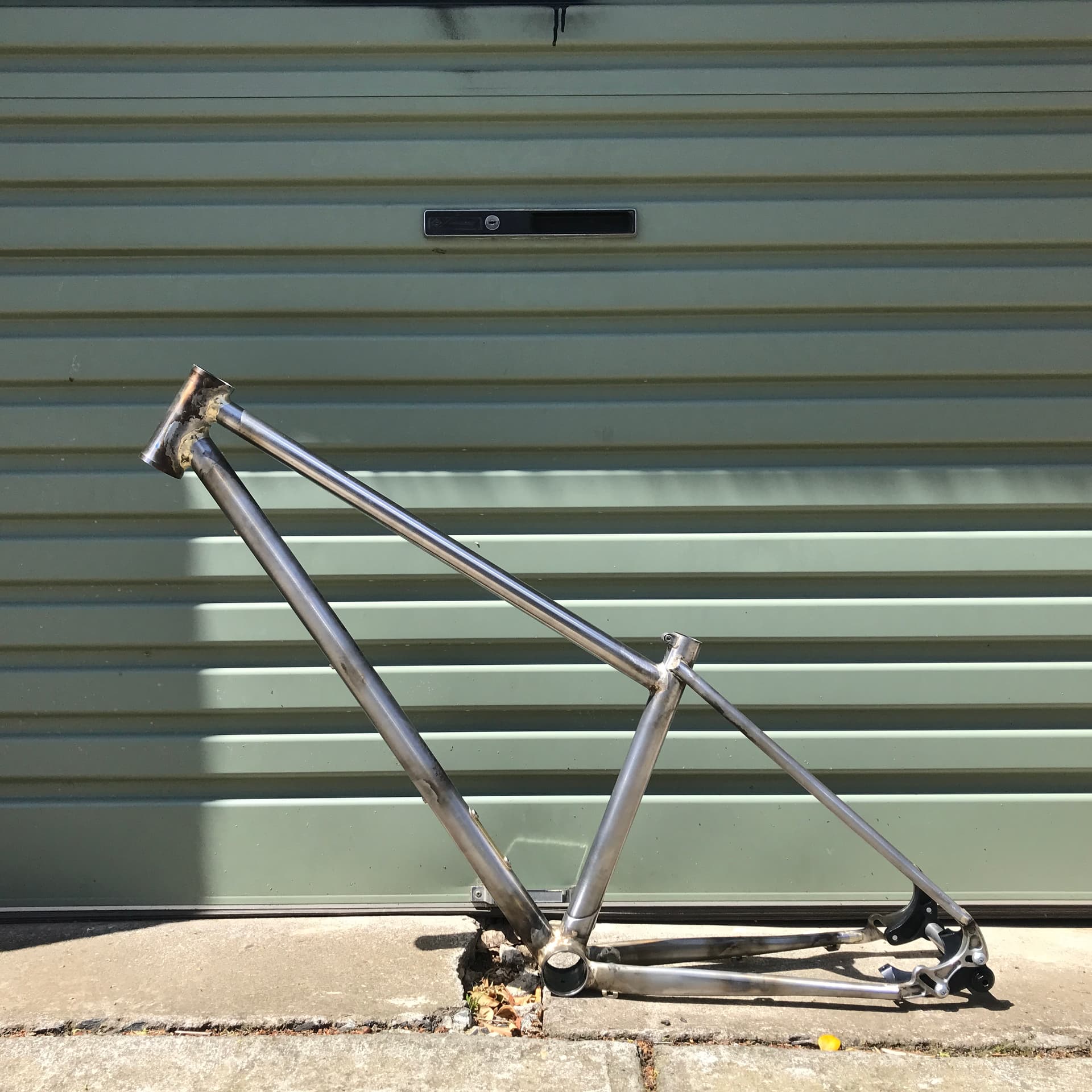 This is a hardtail with a reasonably low standover / acute angle between the stays that I built a few years ago. Fits a 4-pot caliper with no issue (160mm rotor).