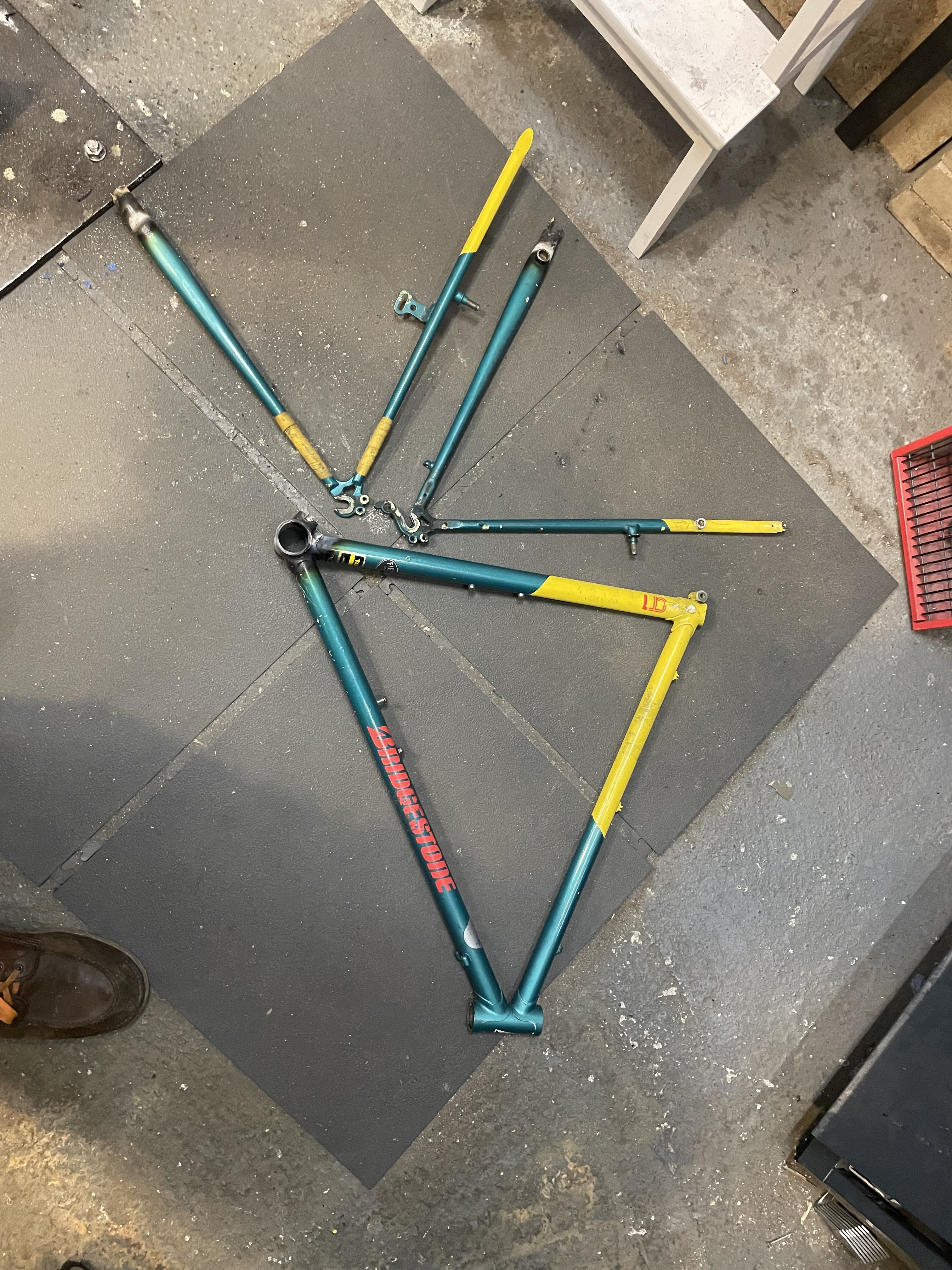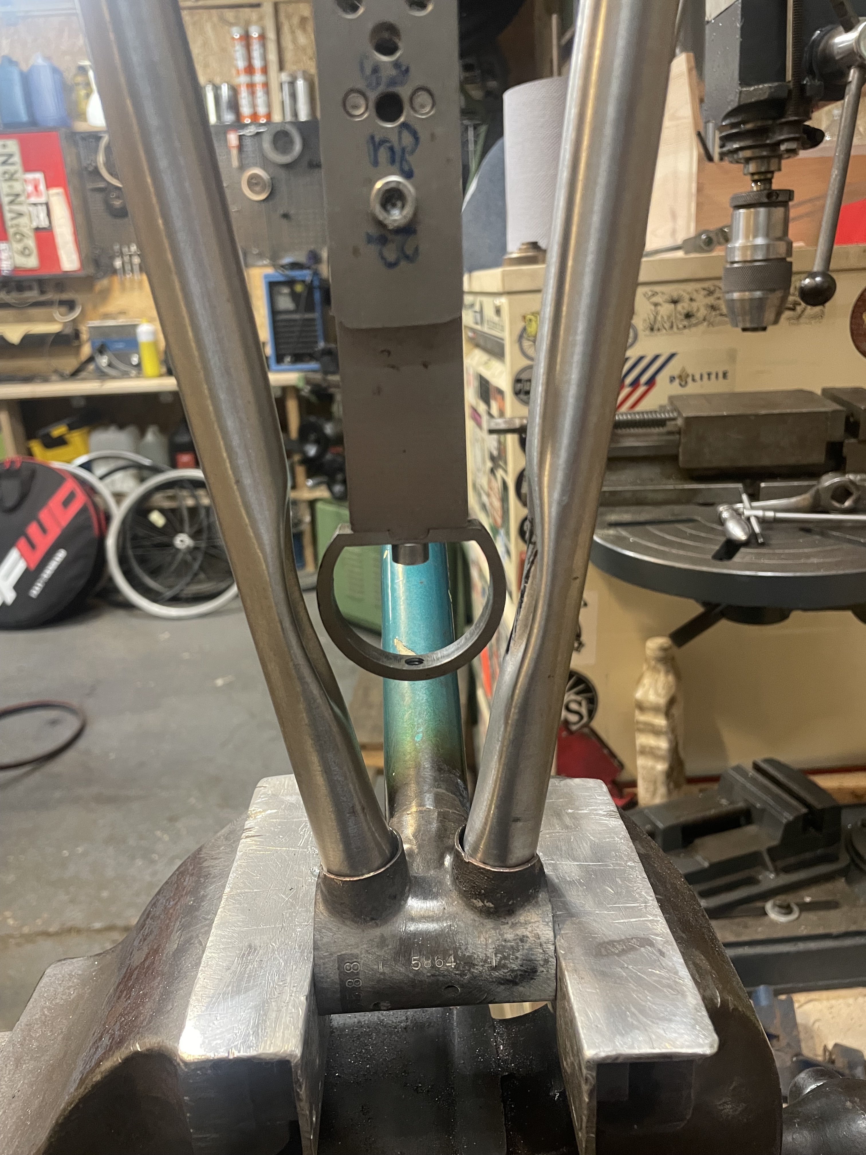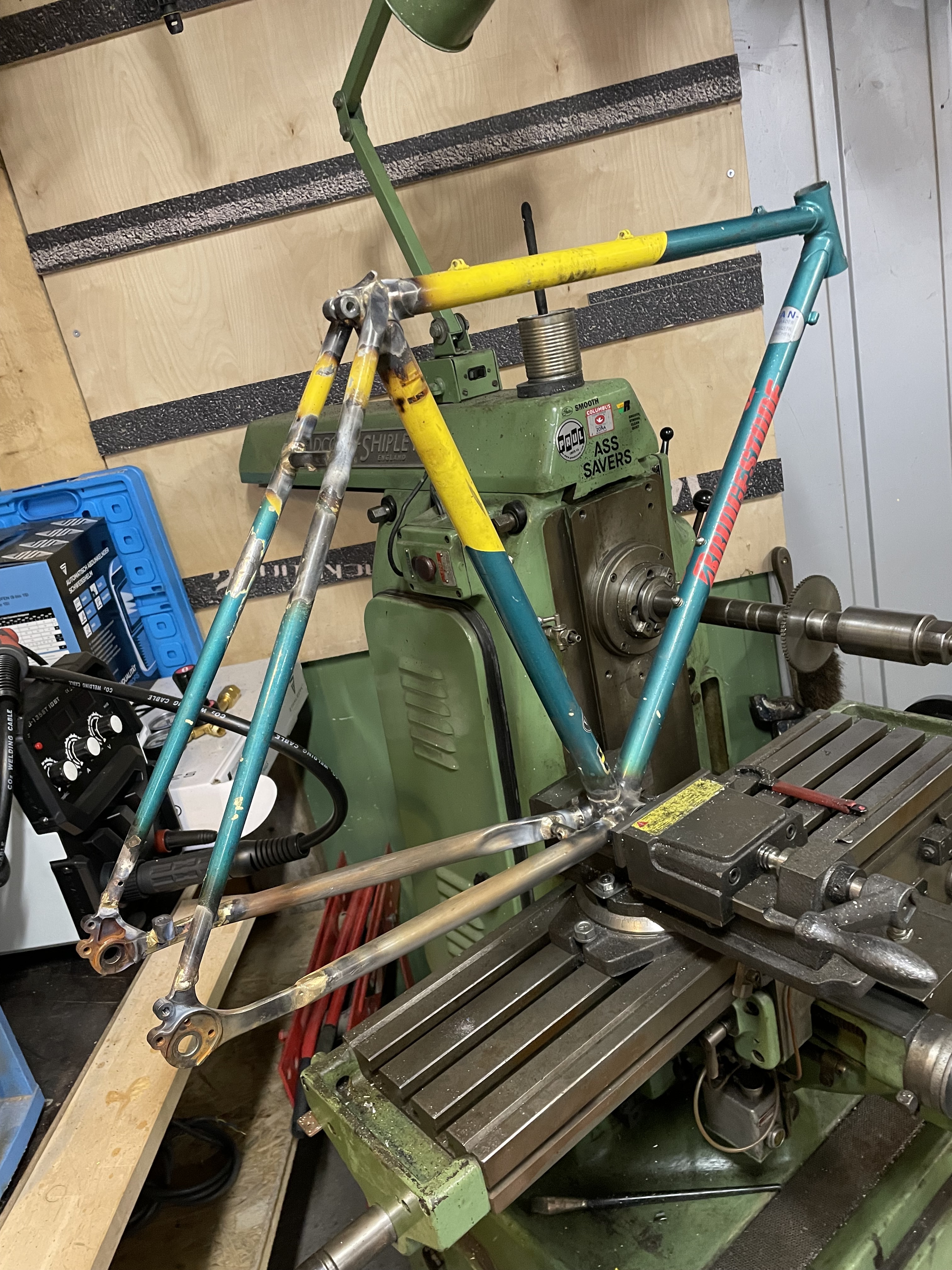 My plan now is to hole saw a bit of the stubs and braze on an extra bb shell, to use as a yoke, and land the new chainstays on the second bb shell.