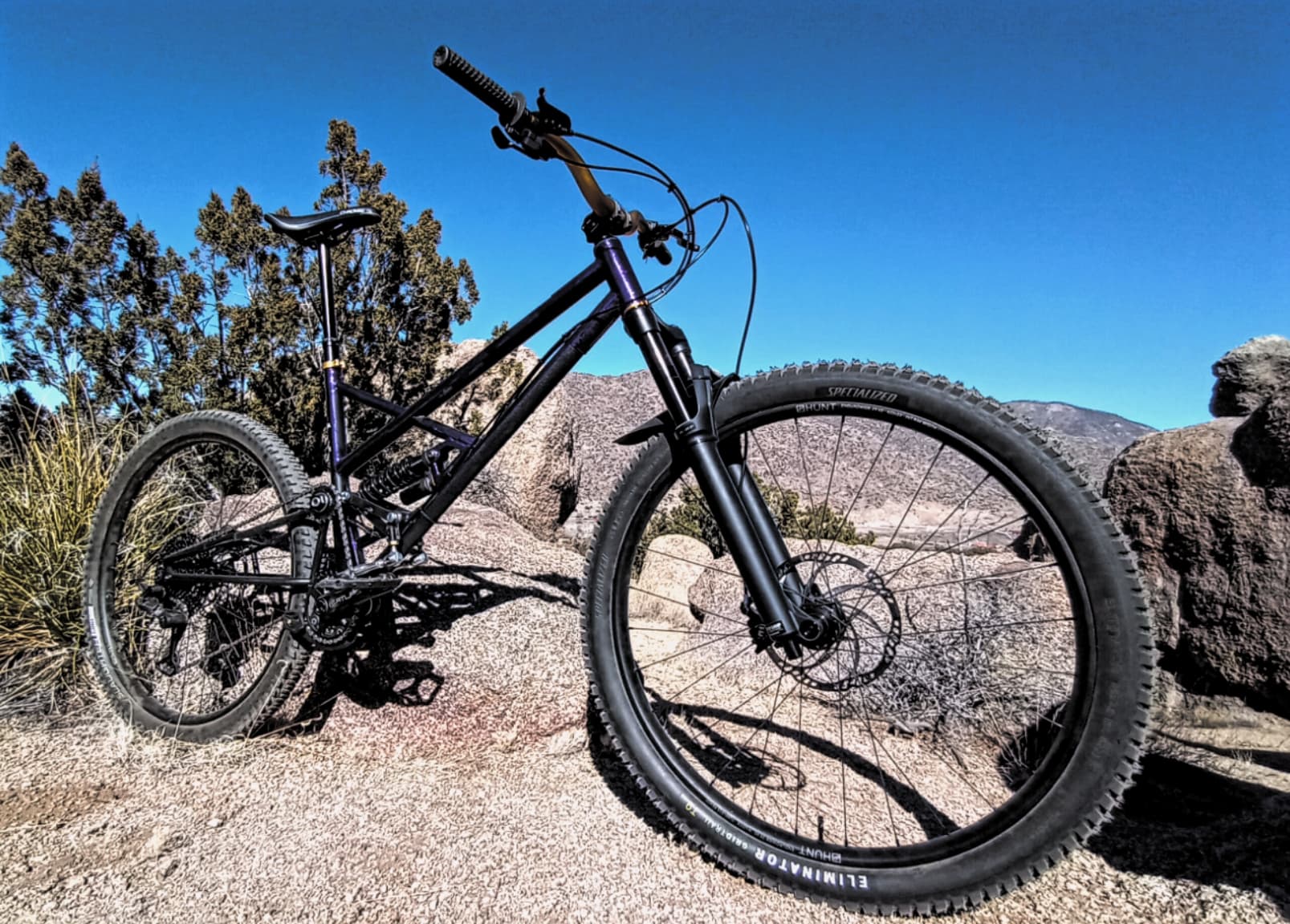 With a pivotal seat, fork at 170mm for park duty. Only guy to balck line that mountain on a hardtail that day.