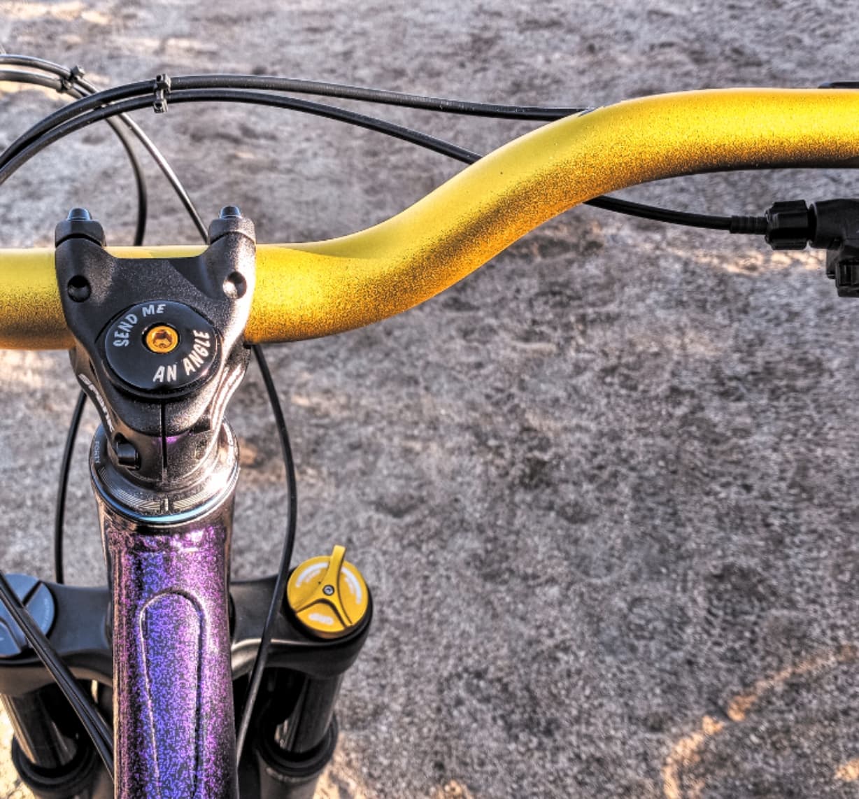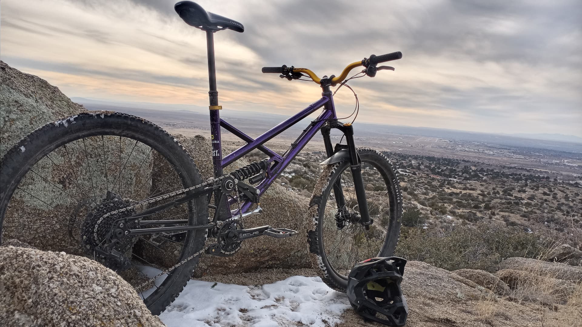 Frame the second, 127/140, high pivot, progressive pull link, 79* sta 455mm cs Sparkly purple. This one rips, it’s heavy AF but it makes up for that every time it’s pointed downhill. I like the hell out of this one.
