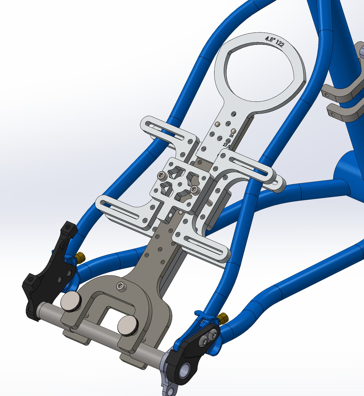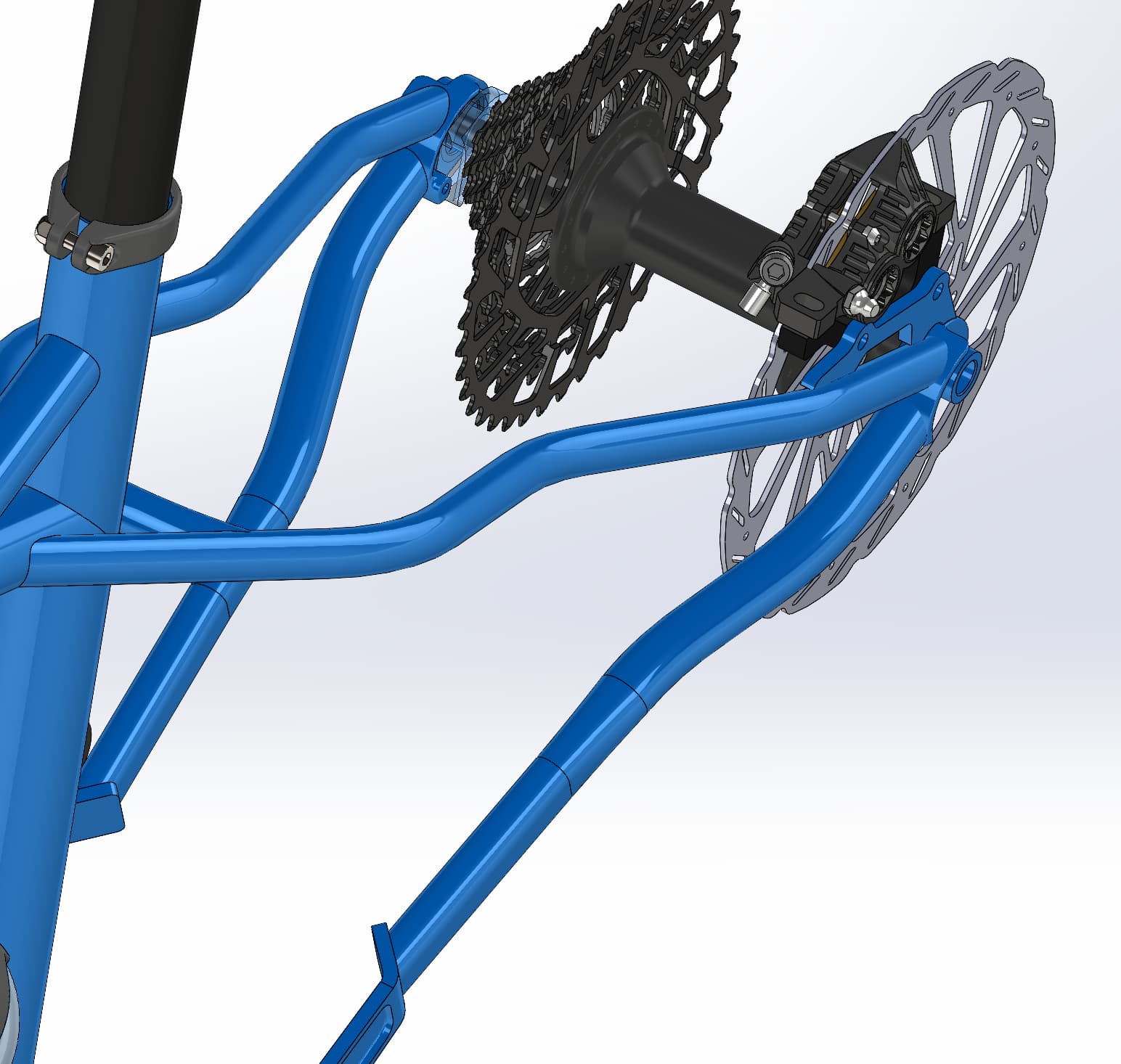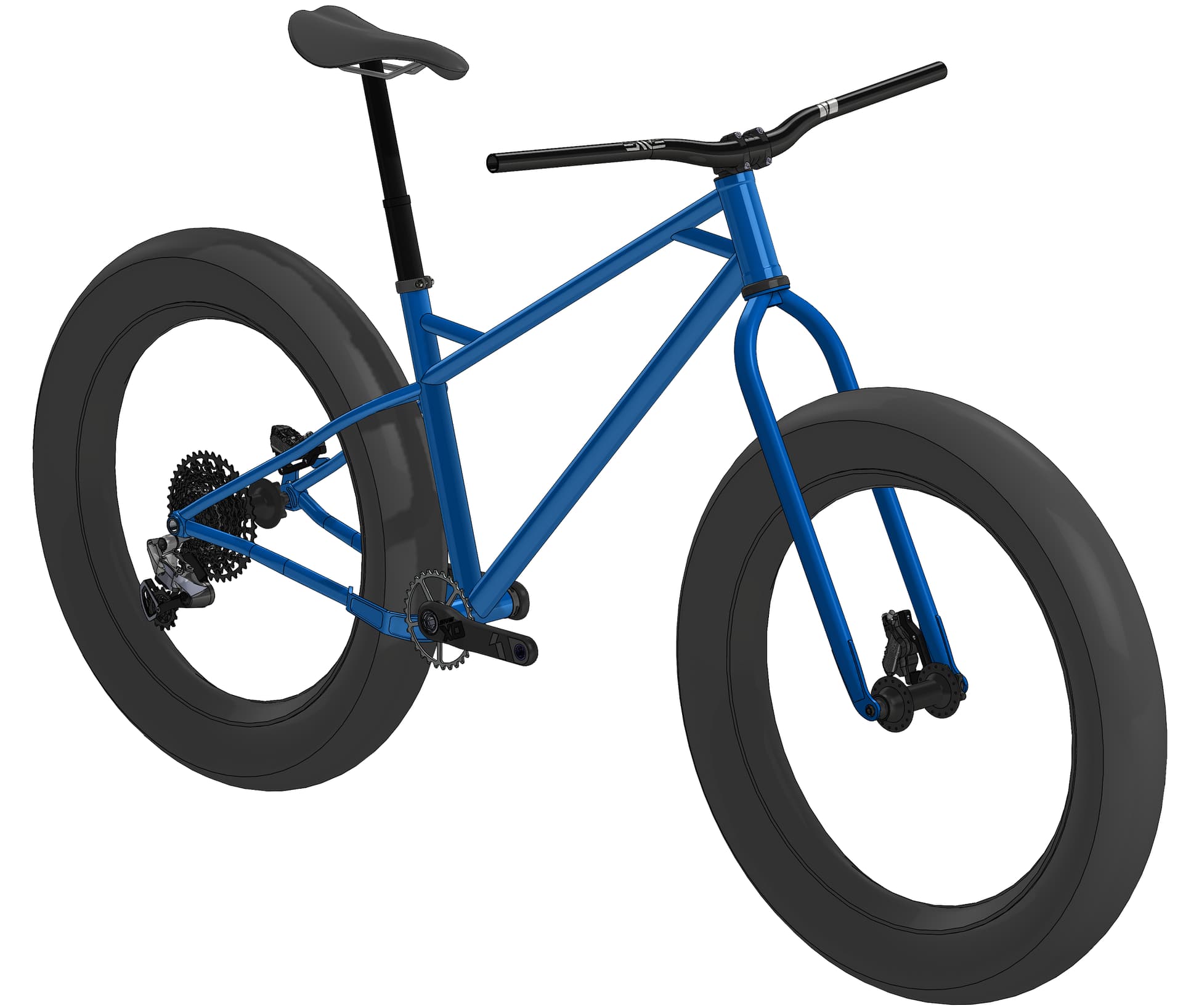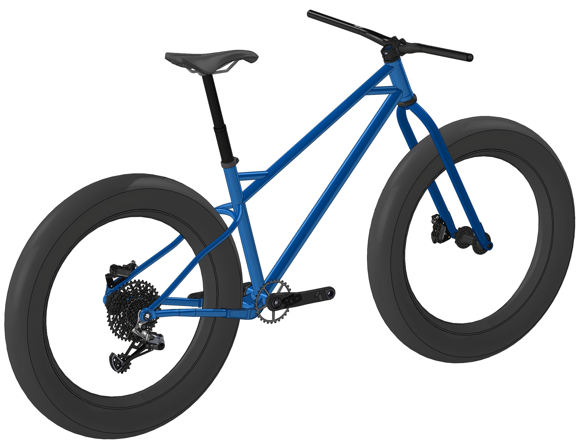 After the v1 was completed, I started to design a fatbike for me. I had a Trek Farley 5 before, which I mostly liked, but the geometry was a bit too traditional for me. The seated position is fine for longer days on the saddle, but most of my riding is on the local MTB / enduro trails in the winter also, so the short reach was something that was too different from my enduro bikes. Also, I had some knee pain occasionally, and my hunch was that the long 175mm cranks combined with the wide q-factor was at least part of the issue (I’m 170cm = 5’7”).