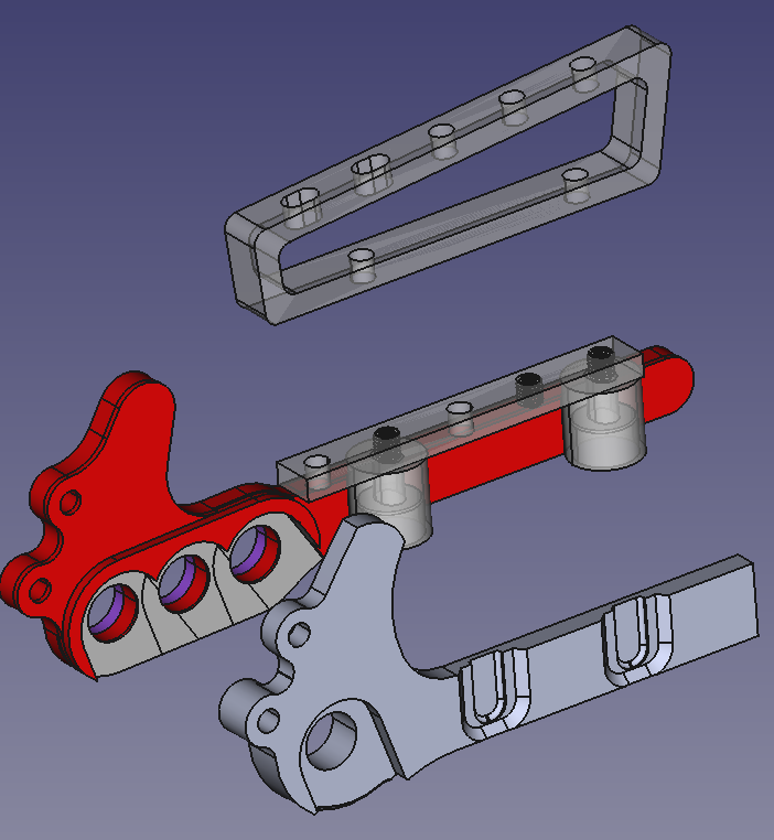 The 160mm adaptor’s threaded and non-threaded holes are deliberate. Via shifting the adaptor 17mm the caliper is shifted 17mm. Via then rotating the adaptor 180 degrees the caliper can be shifted to the final 34mm. The hex screws’ position and direction is like a puzzle, but I think I got it correct.