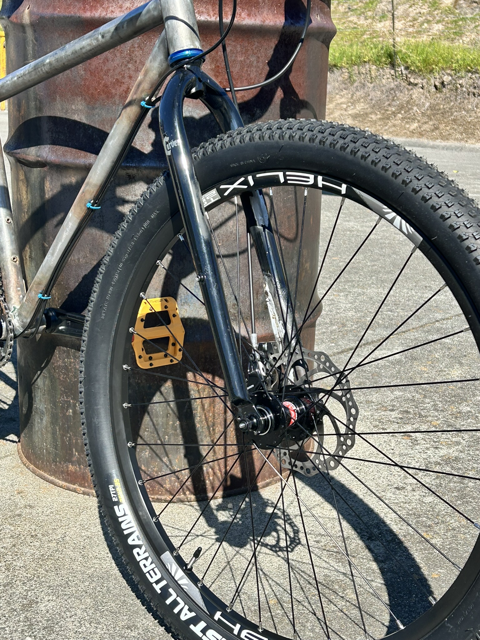 In hindsight I would have tried to fit 650b wheels as it’s easier to find good rubber for them