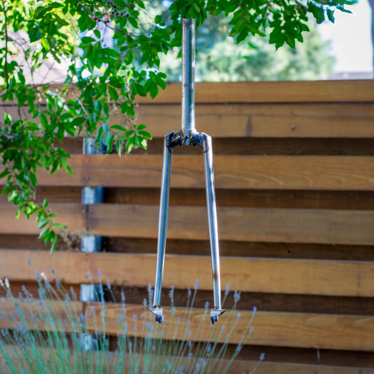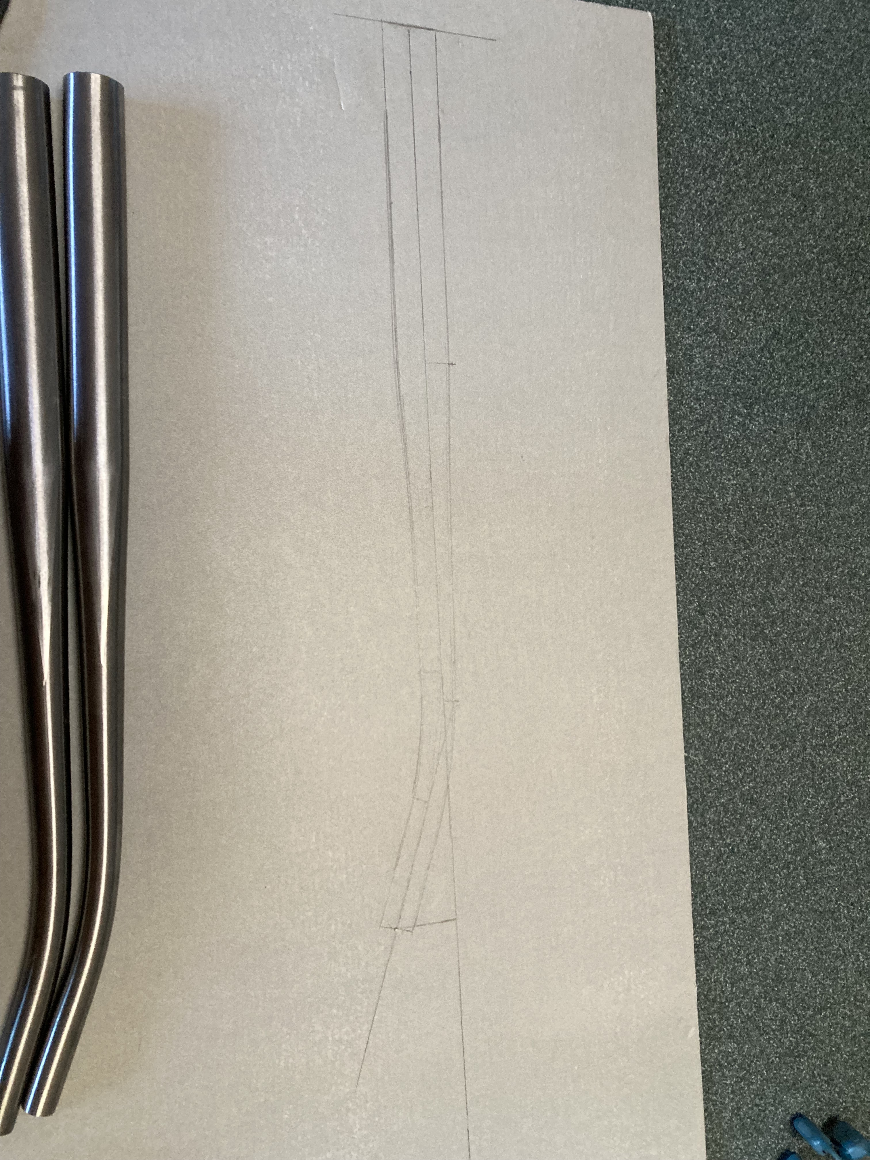 Here’s a segmented fork I made with raked fork blades. I used 1" OD x .049" wall tubes to connect the blades and steerer (which is a Paragon MS2026 straight steerer).