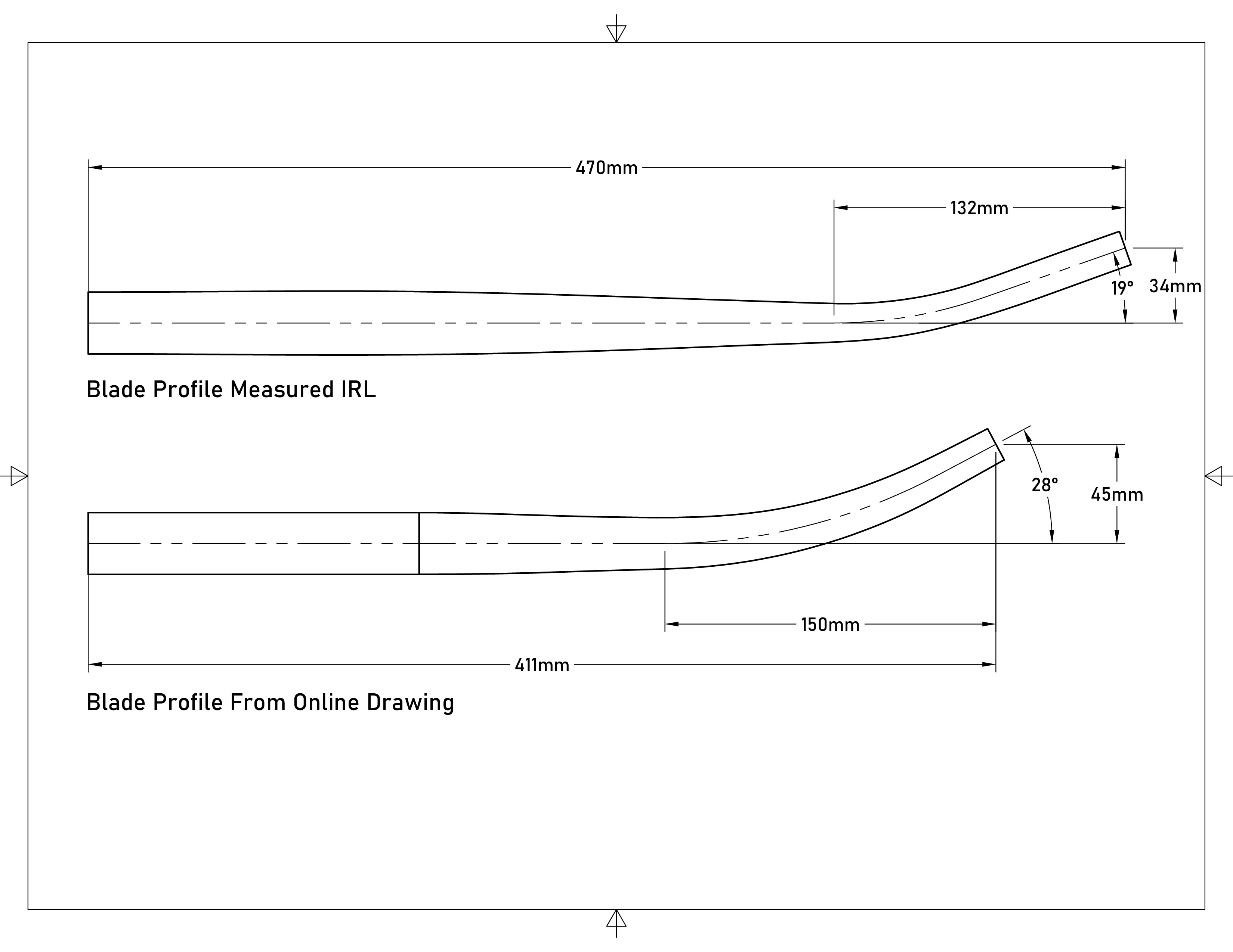 Measure Fork Blades: The blades I received were significantly different (length, rake, taper, etc.) than the drawing provided by the manufacturer. I ended up “projecting” my fork blade onto a large piece of paper to determine the blade profile.