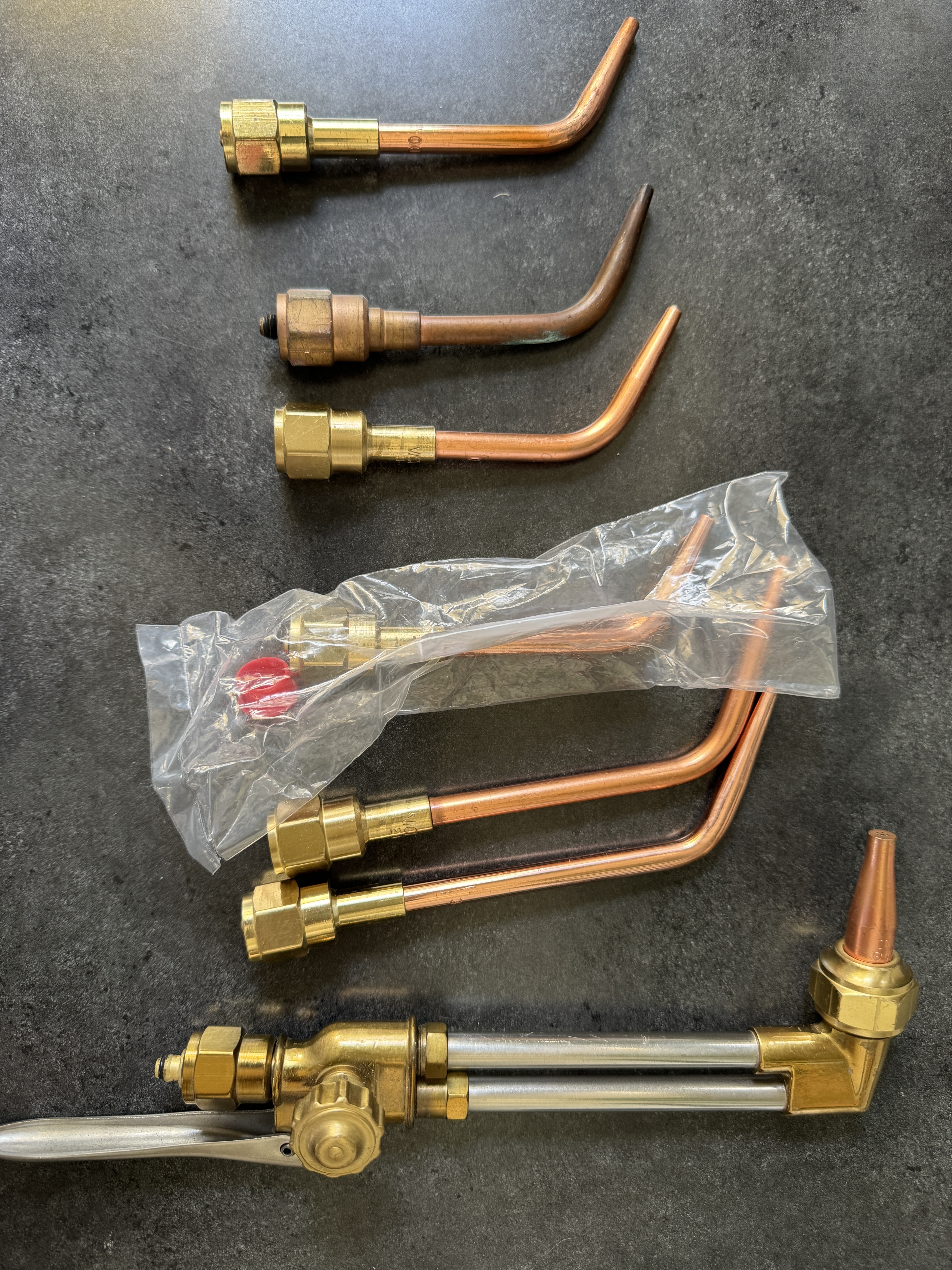 J28 Propane adapter and tips: 0,1,2,4,5. If I find 3, I’ll throw that in. These are the TEN tips for propane/Oxygen with the recess on the nozzle - I think I used one of the tips a couple times before I found the Paige Tools tips. $100 (SOLD)