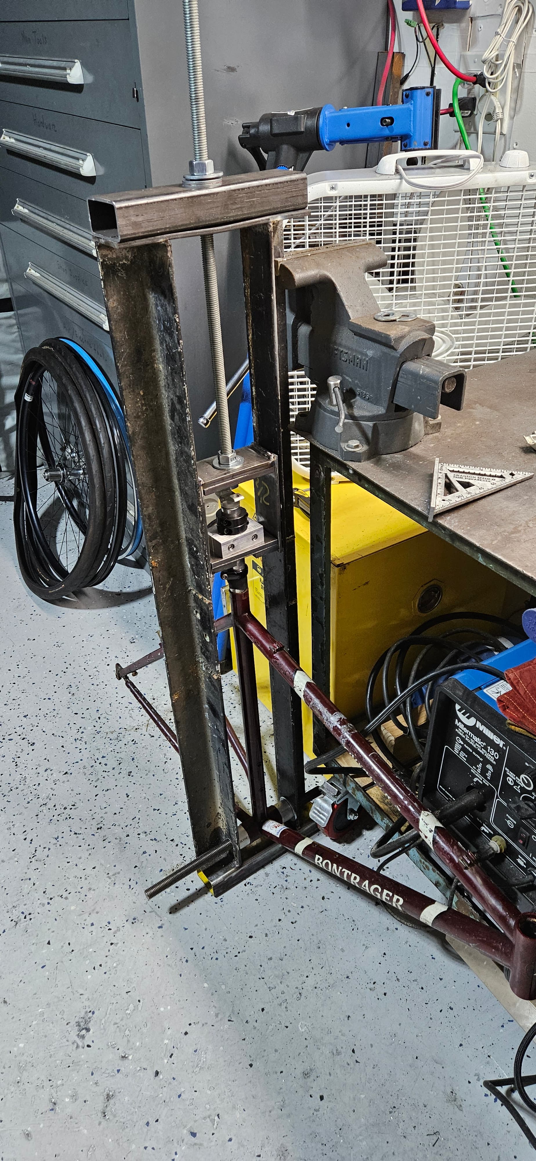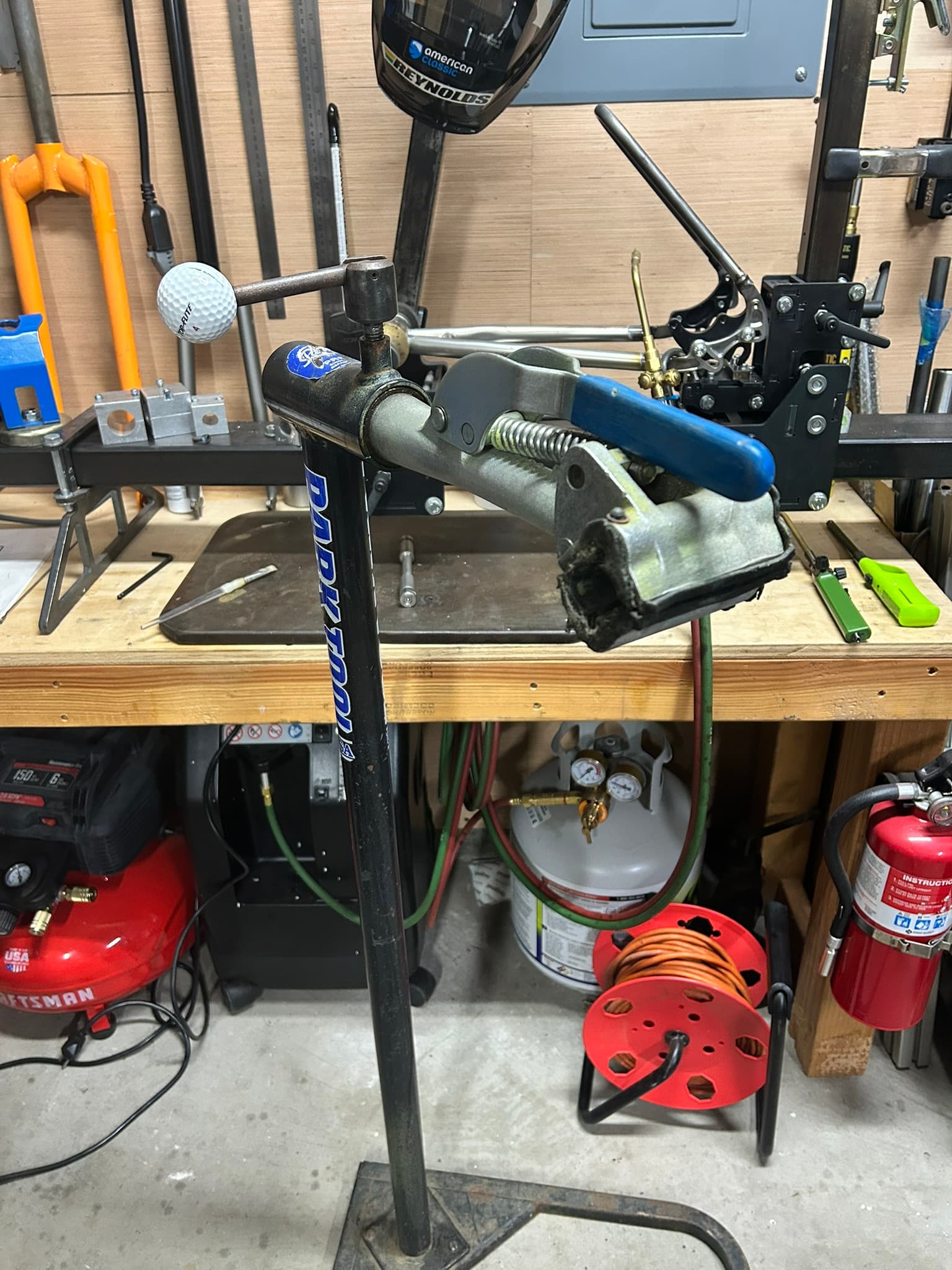 Note the 1995 Park Tool stand that still does it’s job, just needs some TLC. Great for quickly moving the frame around while brazing/welding