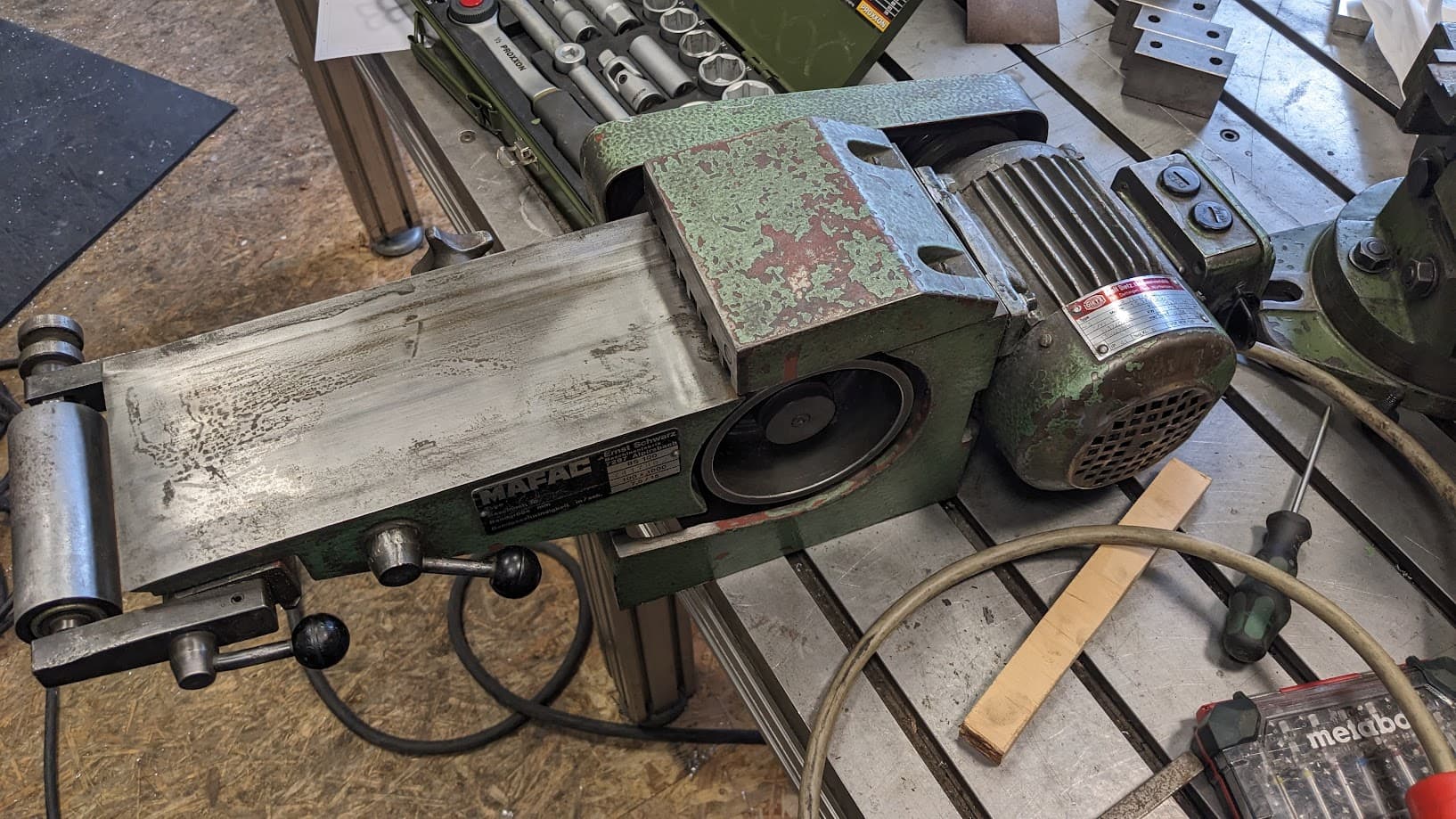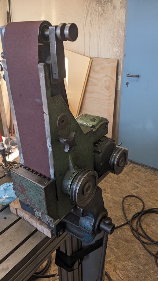 Got myself an old german made belt grinder “Mafac BS100”, pretty run down but very affordable. These can go for as much as 1000€ when in good shape!