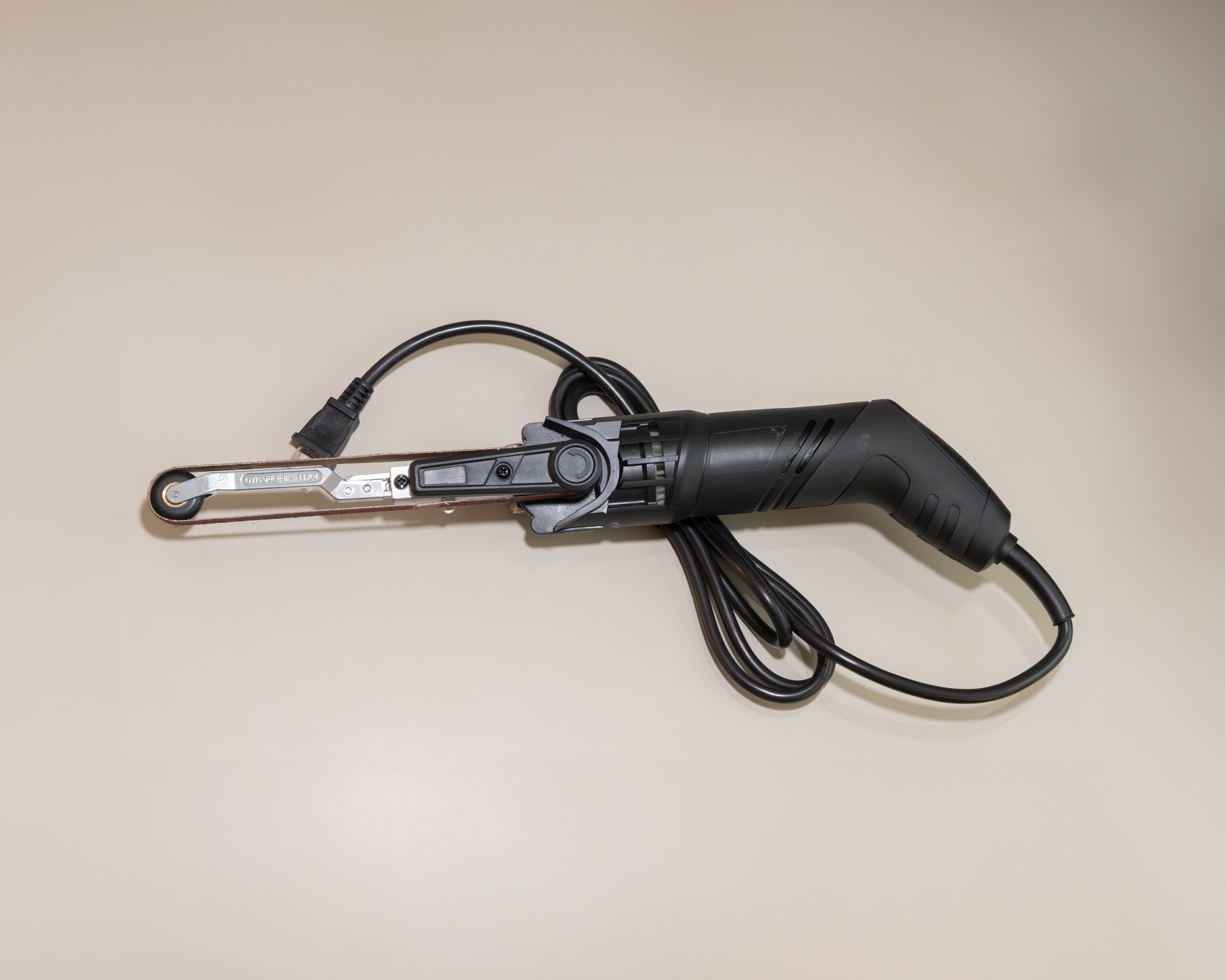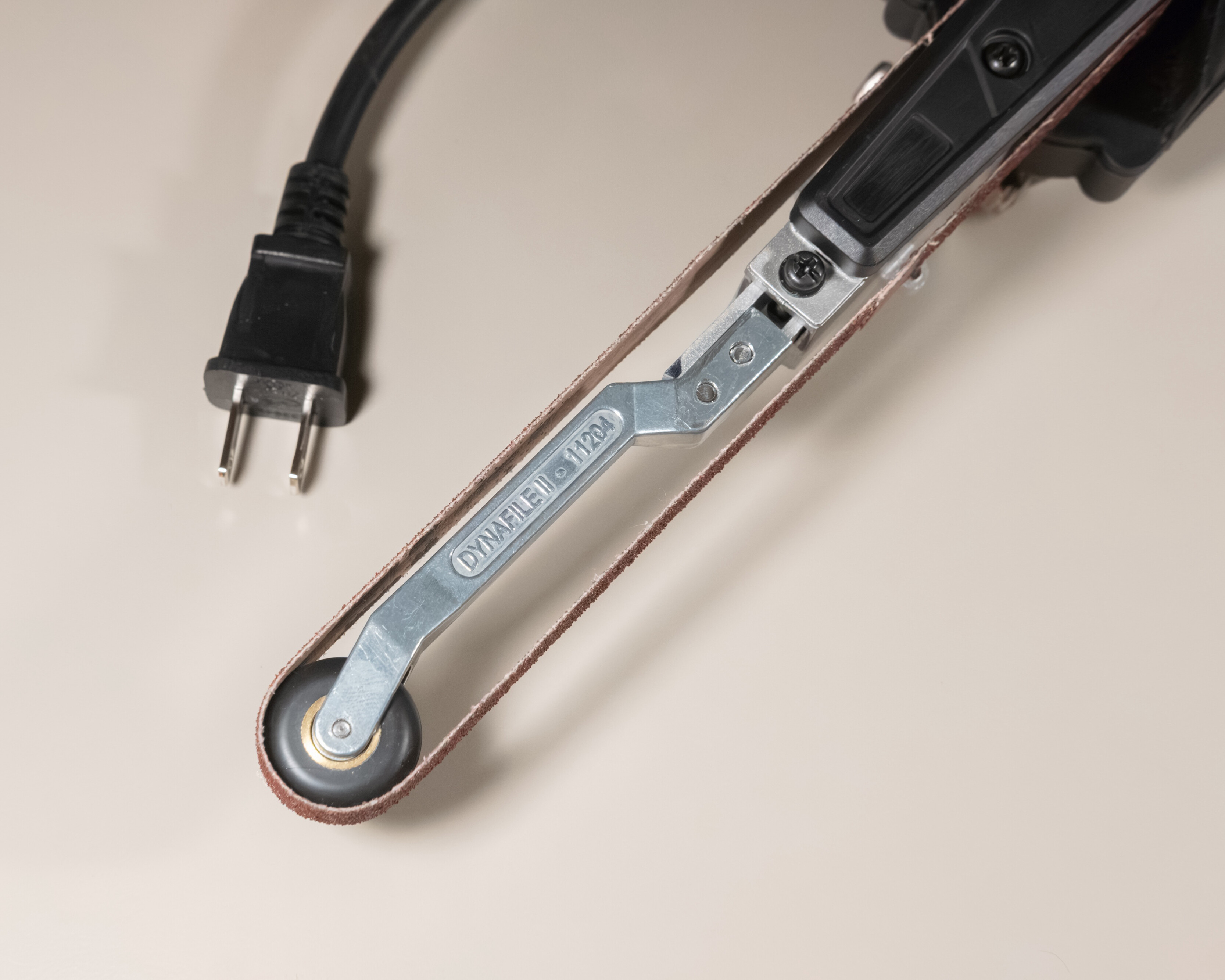 I made myself an electric dynafile of sorts by combining a contact arm and a $36 wen band file. If you leave the plastic silver guard off, you can fit the non-woven abrasive belts. This is not the most ergonomic belt sander out there but for under $100 it should work well for many tasks for a long while.