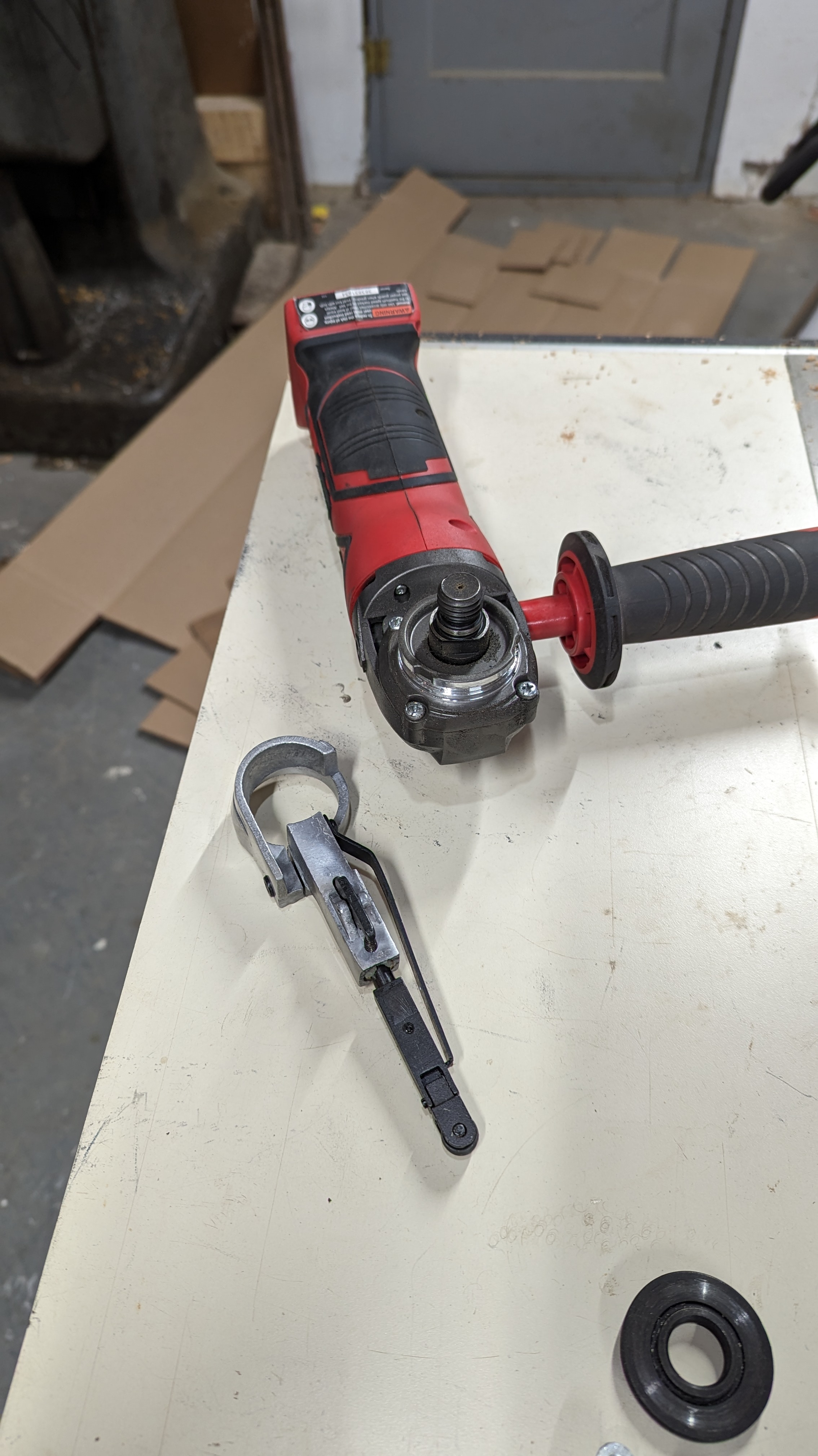 After staring at the parts sitting there for several months I finally started on my cordless bandfile. I still have a bunch of final tweaks to make, but it works which is a win for about an hour of work.