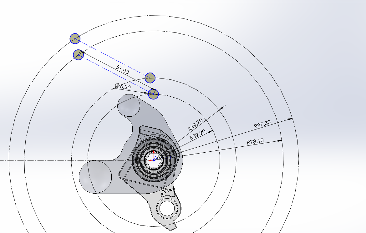 As the original IS dimensions are for a 140mm disc (or a 160mm disc if you use an IS->PM adapter that usually adds 20mm) and I want a 200mm disc for the heavy bike, I wanted to make it an IS+40mm tab (and then mount the IS→PM adapter for the 200mm disc).
