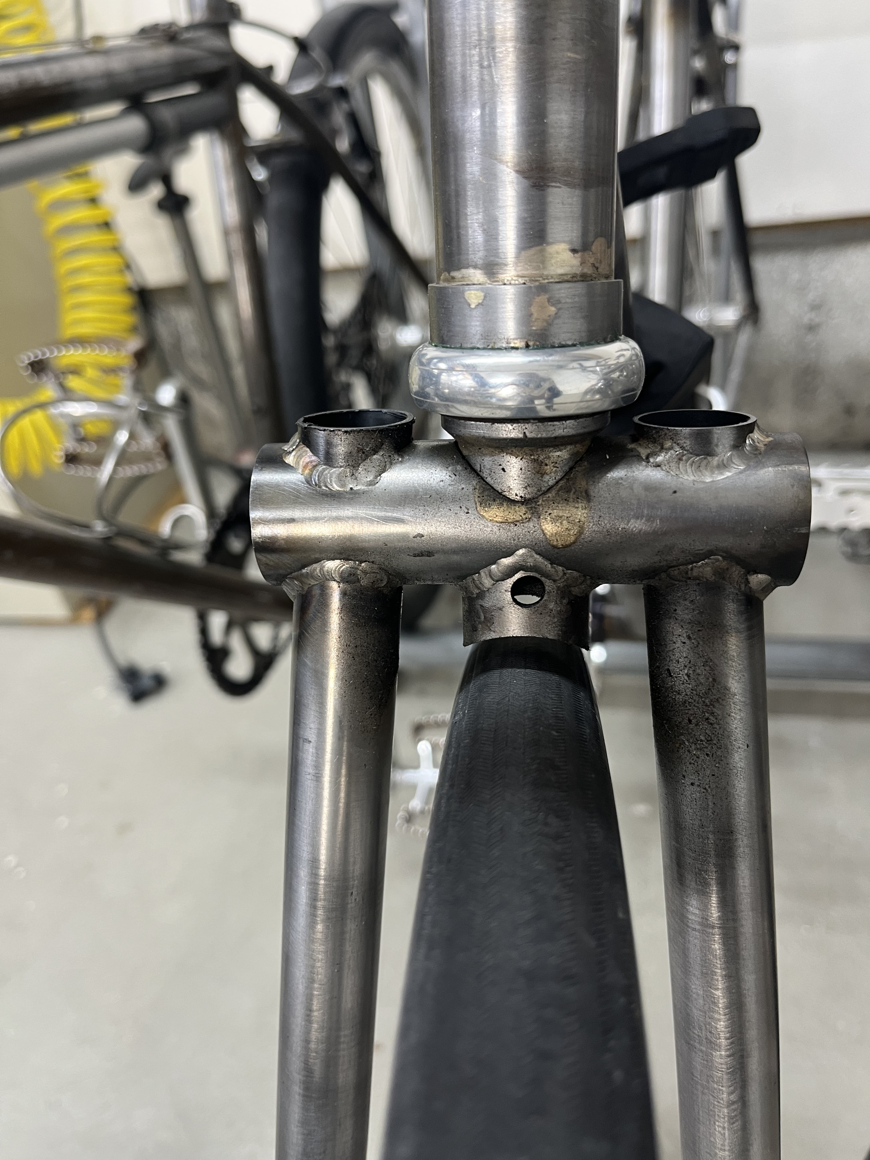 That’s what I did on round 2, and will do so on the next: piece of steerer tube cut for the tubular crown. Been riding on it. Feels solid. If anything, maybe a bit too solid. Less compliant than previous 80s road fork had on bike. But this fork is also straight blade, so there’s that.