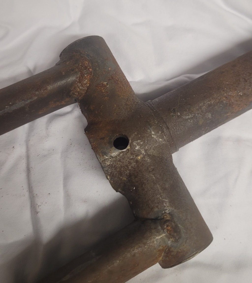 In my mind, this seems just as capable of handling load and torque as traditional segmented fork, and I’ve ridden the bike and it feels solid, but I’m no engineer. Thanks. (Ignore the ugly welds and brazing.)
