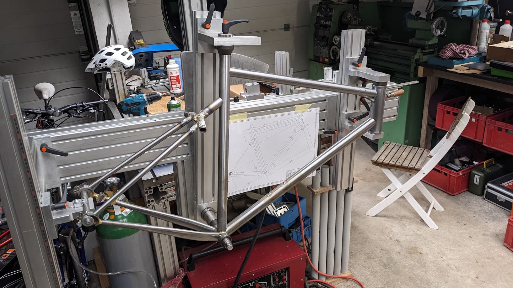 Also, a huge amount of value in making your own jig. It’s not about reinventing the wheel but it definitely takes you deep into understanding how you design and build bikes. I built my own window frame jig early on and still use it, with all its good and bad points. It’s not pretty but it’s super accurate and easy to set up when you understand it. I also learnt way more about my frame building than I thought.