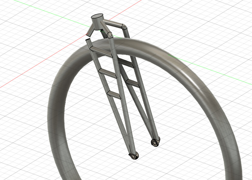 Not a CAD guy here but do have a bit of experience with truss type forks. Here are my thoughts- .065 is more wall thickness than needed, my guess is that .035 would work fine. I would consider eliminating at least one of the horizontal side braces and maybe even replace them all with a single diagonal brace. The cross brace at the top is a good idea, but better yet perhaps instead of printing the 4 elbows you could consider printing it as a more traditional crown with 4 spigots. Some 5/8 .035 from Aircraft Spruce and careful work with a hacksaw and files could get you a lot farther than you may think. Just opinions, YMMV and please post your progress whichever way you go. Possibly some inspiration below, not really a fair comparison though as the Pedersen frame this fork is for has an effective 18” head tube (due to having a Heim joint much lower down).