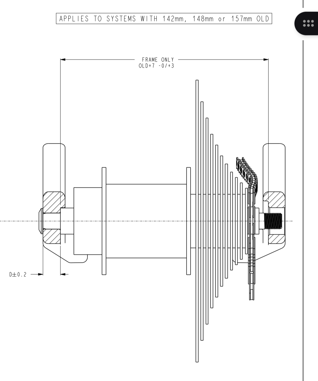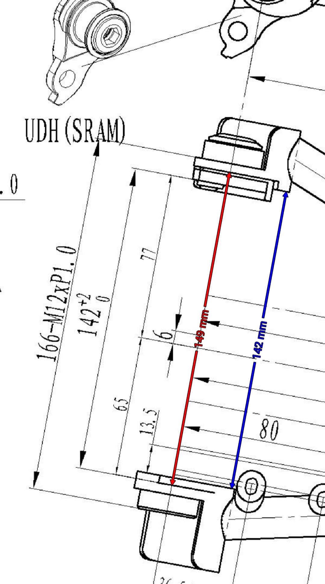 With 142mm OLD and UDH, does the blue dimension necessarily have to be 142mn and the red one necessarily 149mm?